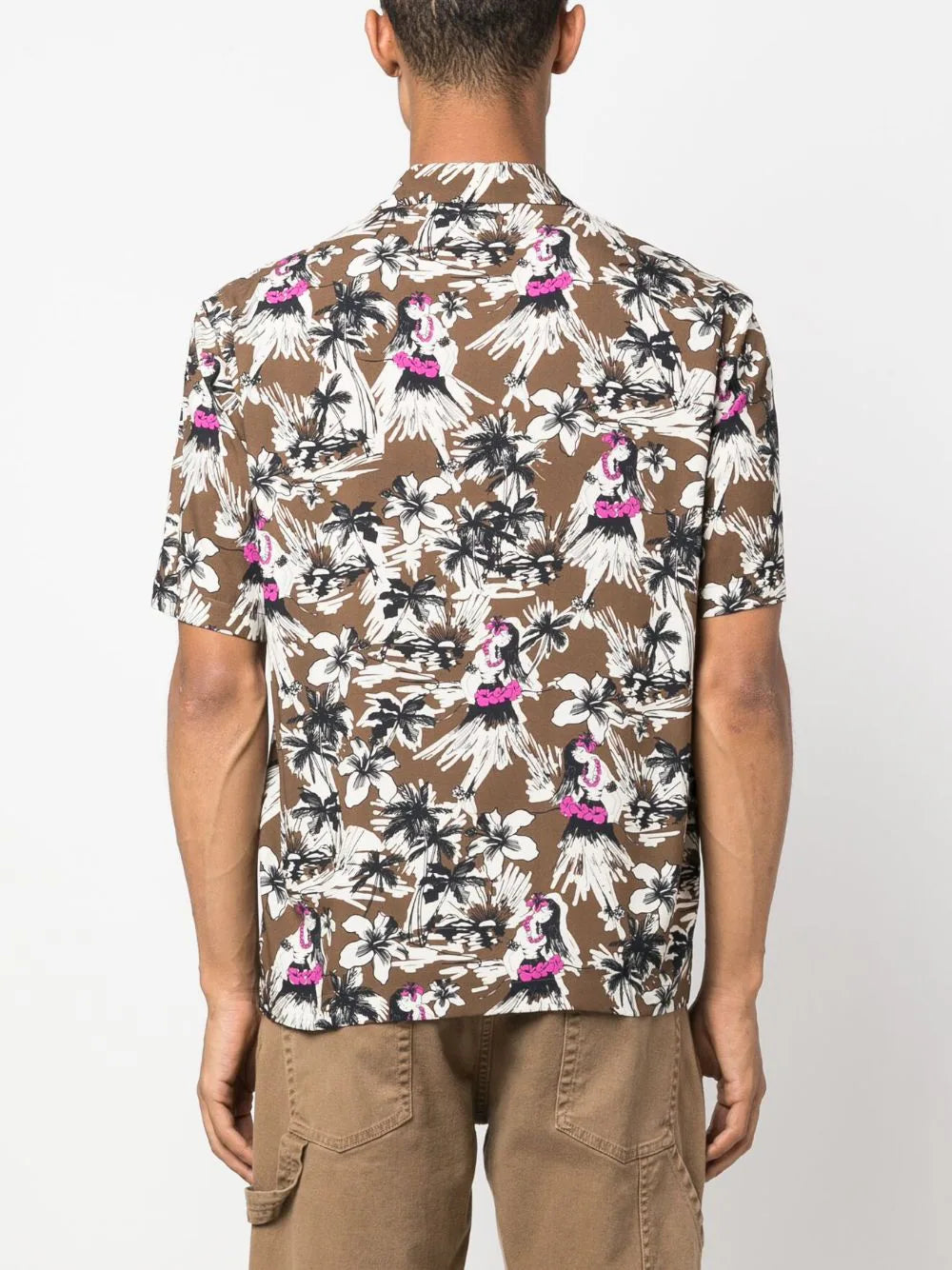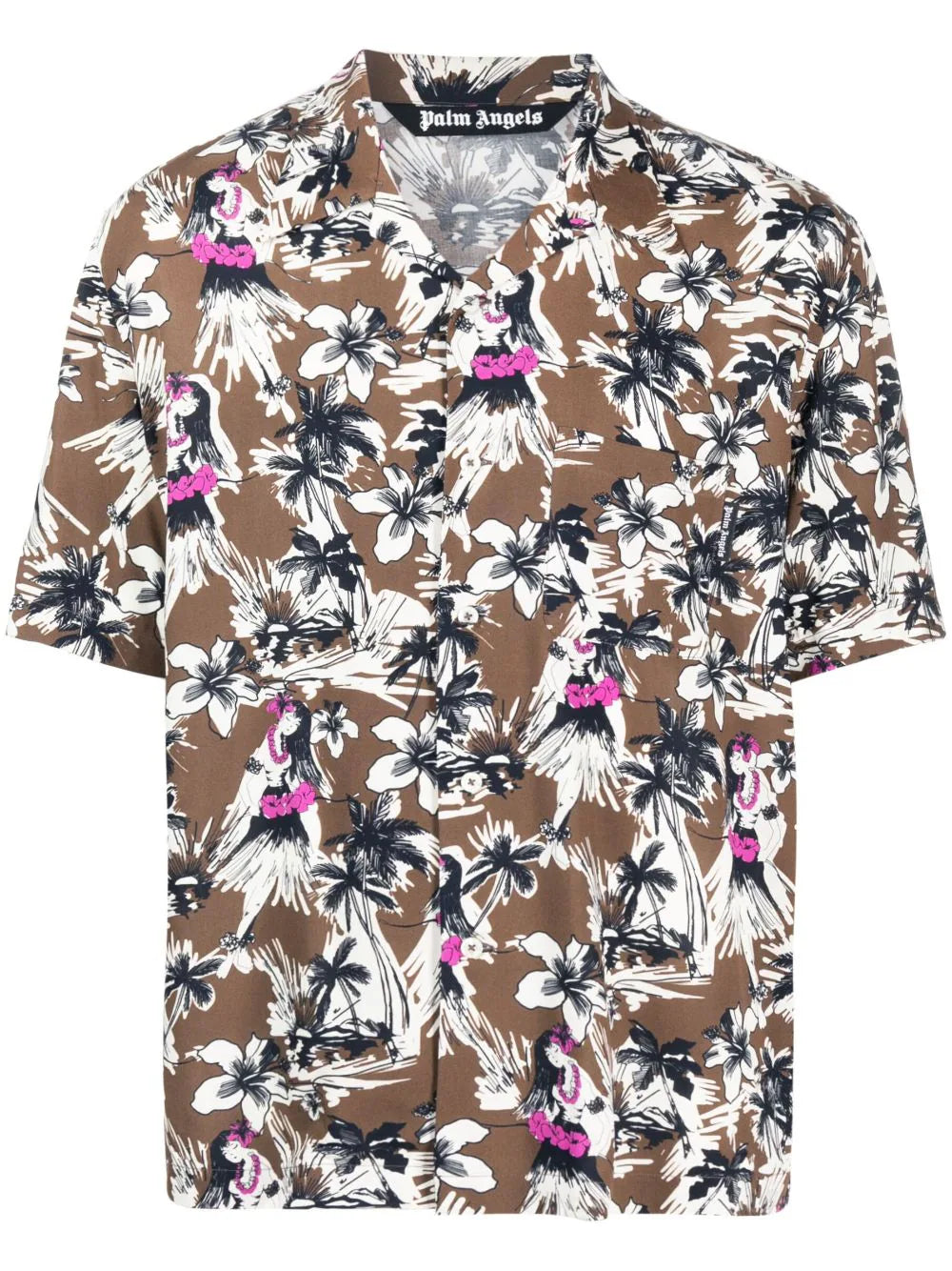 Nodding to its relaxed aesthetic, Palm Angels decorates this short-sleeved shirt with a graphic-printstyle. Besides a traditional dancer and floral motifs, signature palm trees are patterned all over.