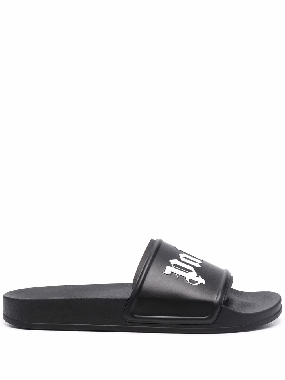 Perfect poolside and beach style with these black slides from Palm Angels. With a slip-on design, the pair boasts white logo lettering across the straps.