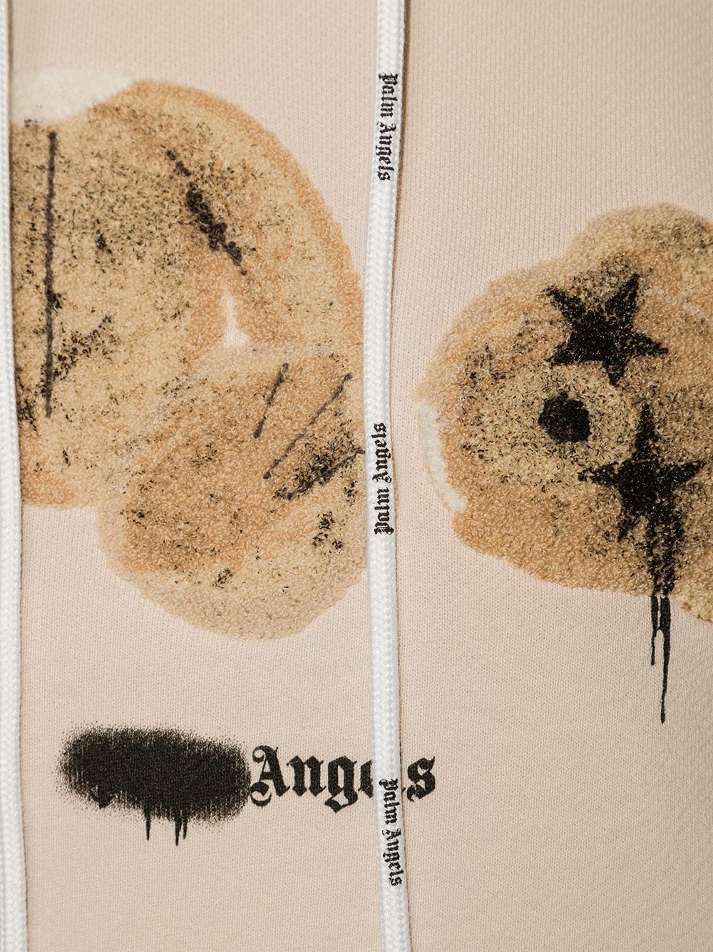 PALM ANGELS WOMEN Sprayed Bear Print Hoodie Beige