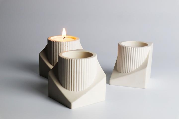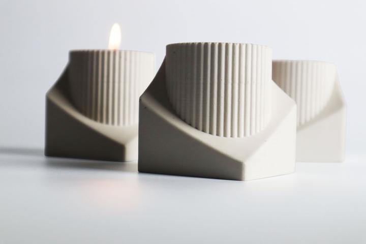 The Pilarch tea light holder was designed by Triqis. Its sculptured form embodies the chiseling and hammering of stone sculpture, noticeable by the emerging pillar from the gradual stone cutaway. The Pilarch tea light holder is inspired by the architecture found around the Roman Baths in the city of Bath, Somerset, England.