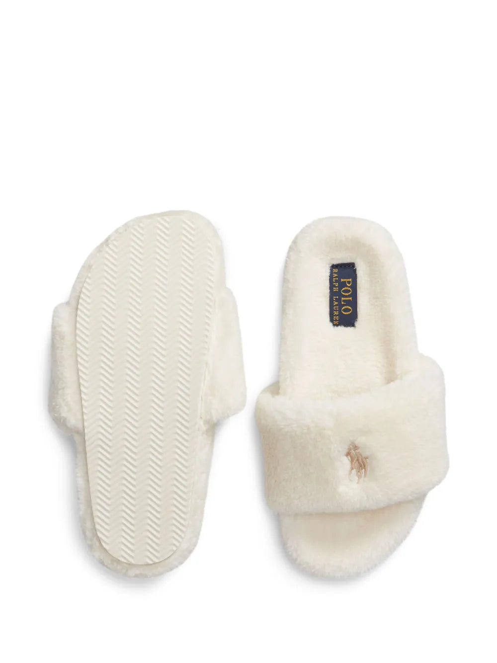 RALPH LAUREN WOMEN Faux-Shearling Slippers Cream White