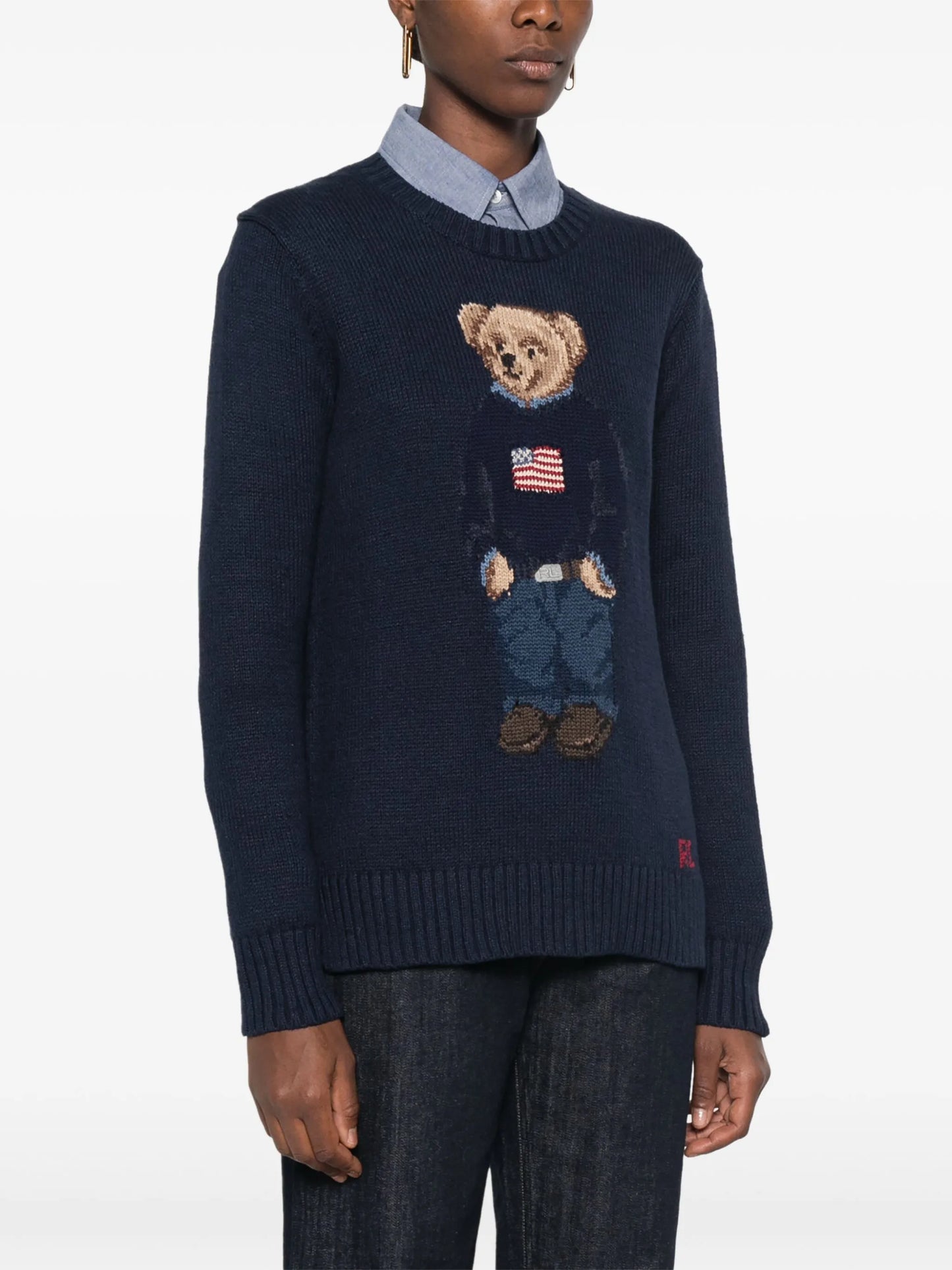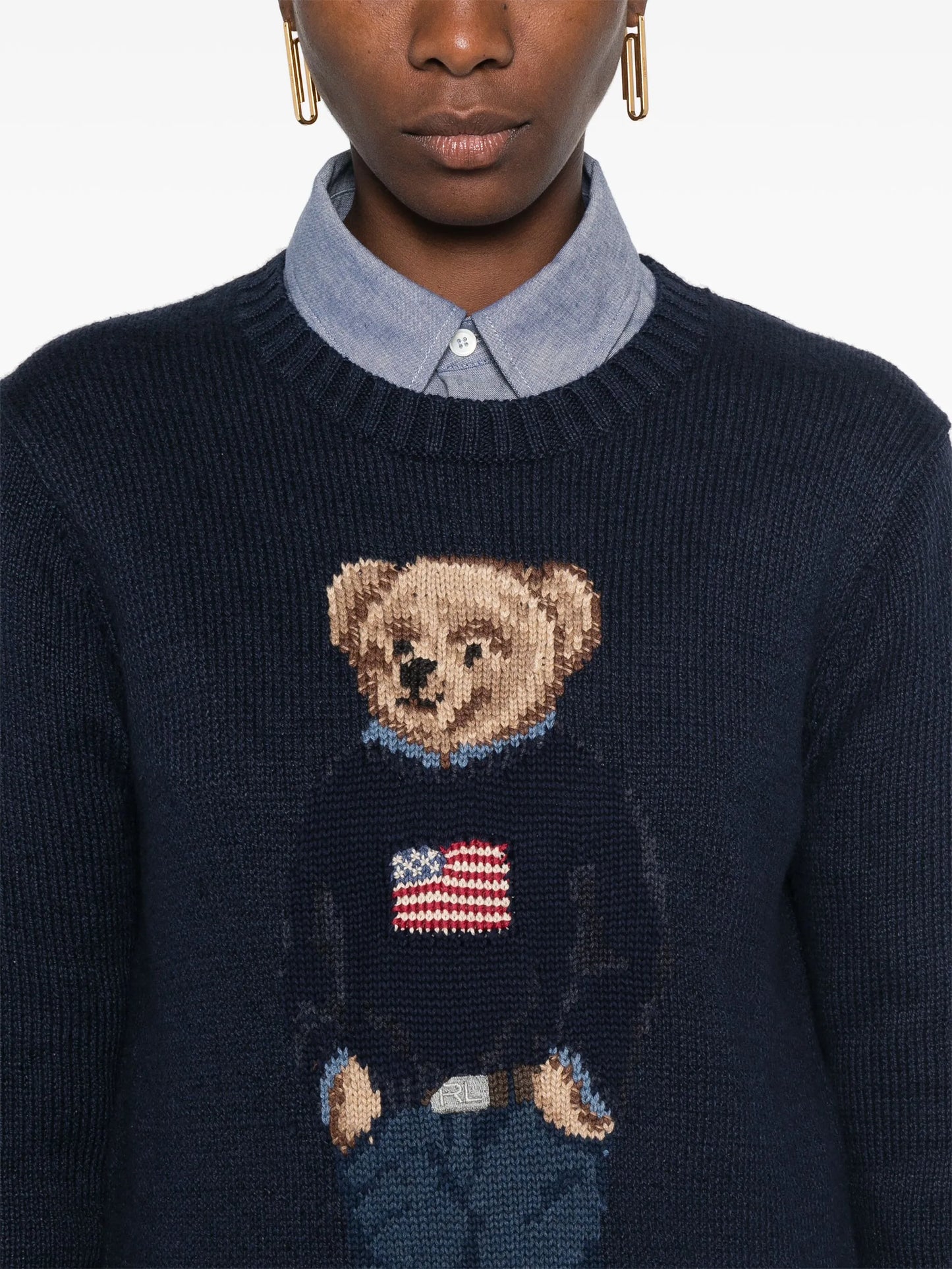 RALPH LAUREN WOMEN Flag Polo Bear Sweater Navy Blue