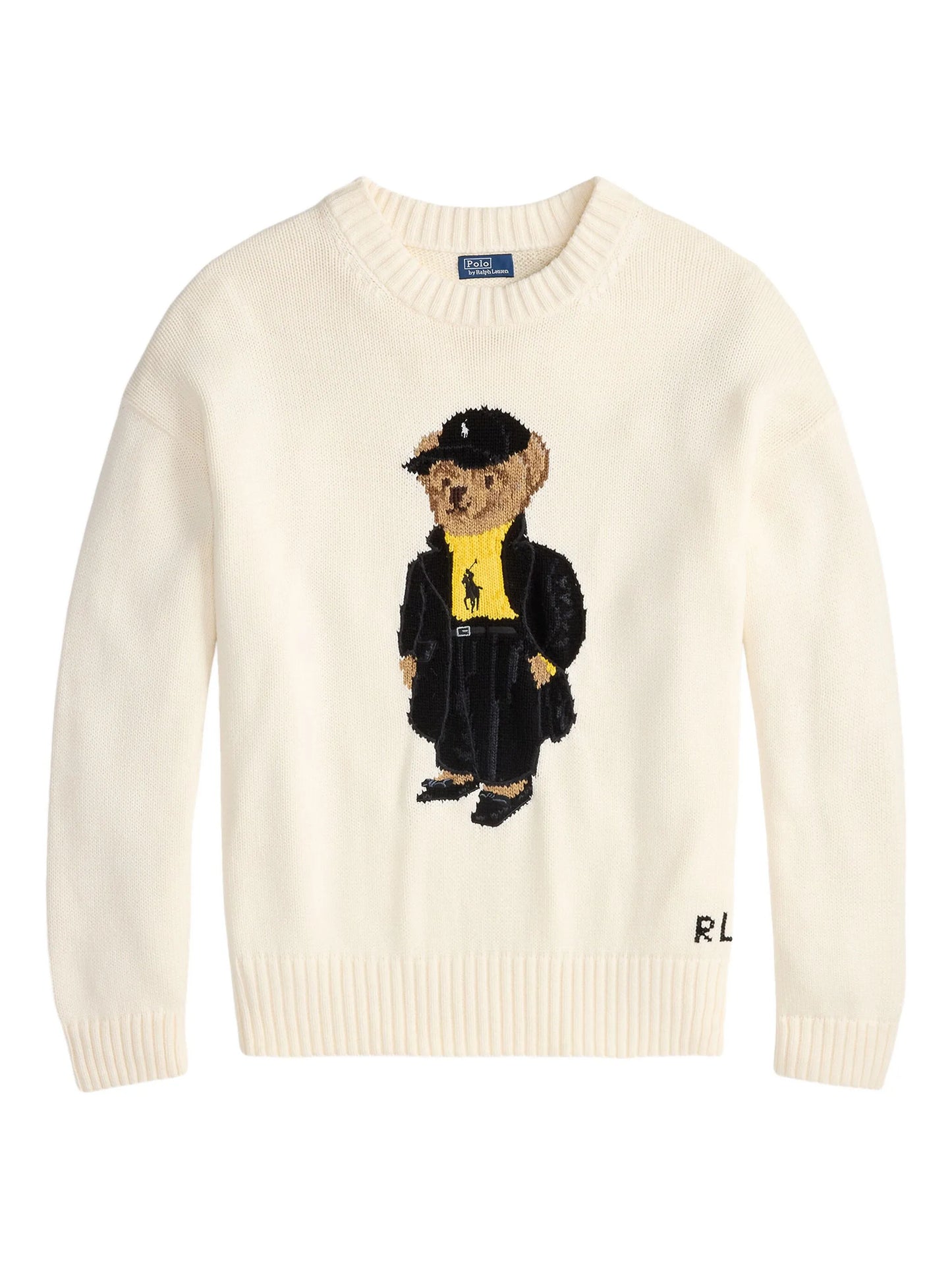 RALPH LAUREN WOMEN Polo Bear Cotton Crewneck Sweater Cream/Multicolour