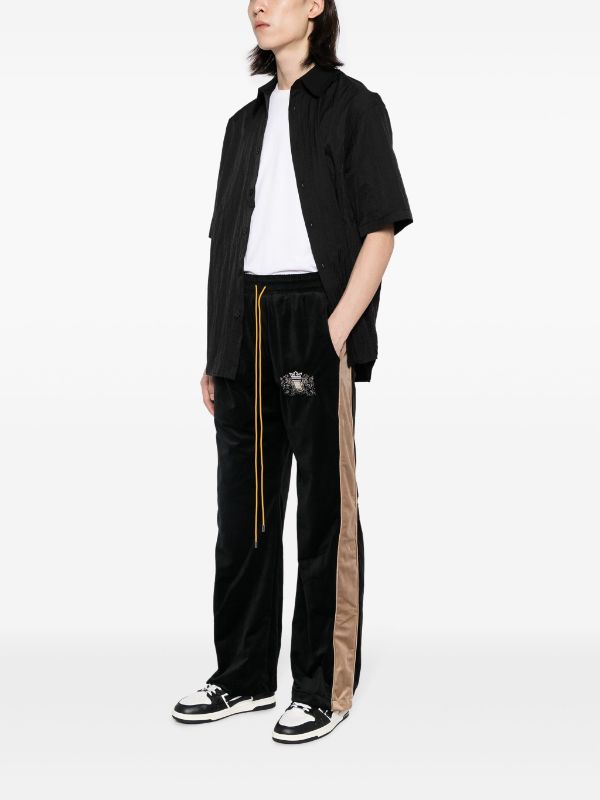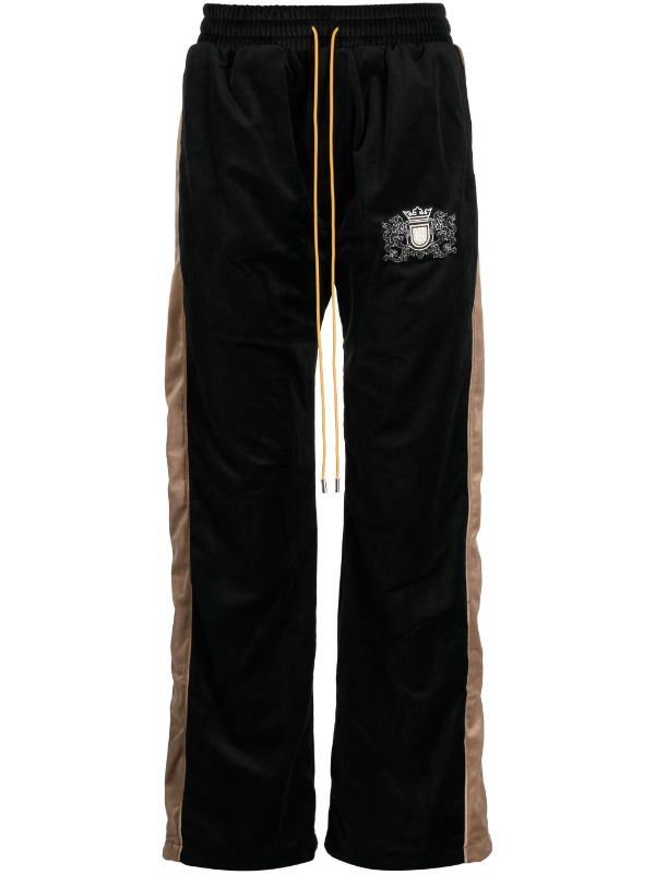 Intricately embroidered with the house's 'Sky Crest' motif at the front, these track pants by Rhude are rendered in black with khaki stripes at the side for a laid-back finish.