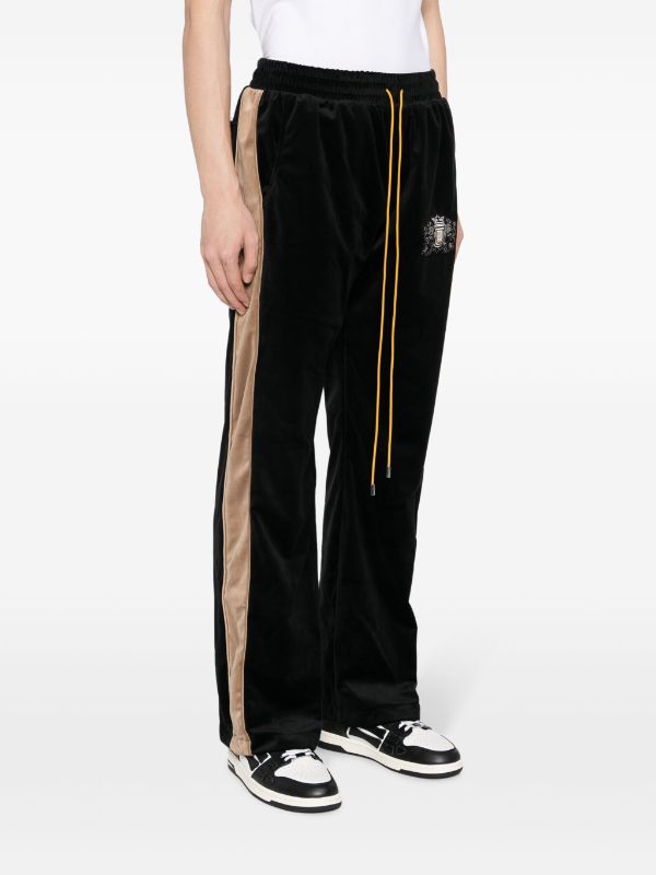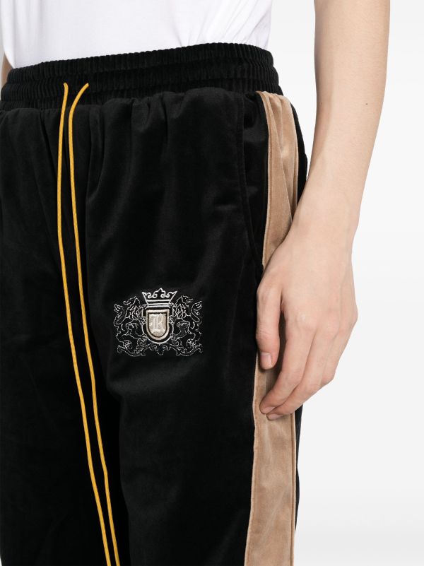 RHUDE PJ Velvet Contrast Embroidered Pants Black Khaki