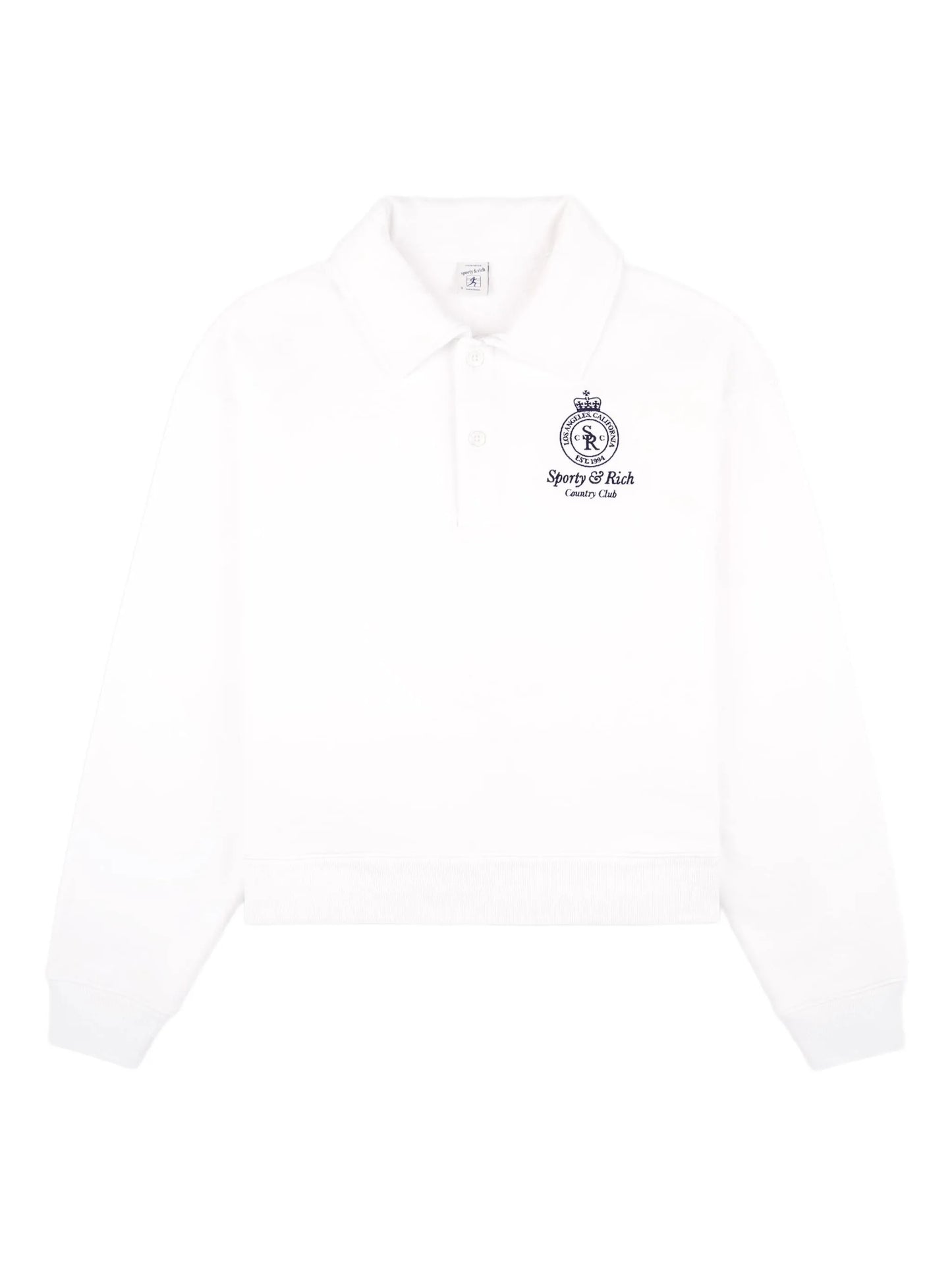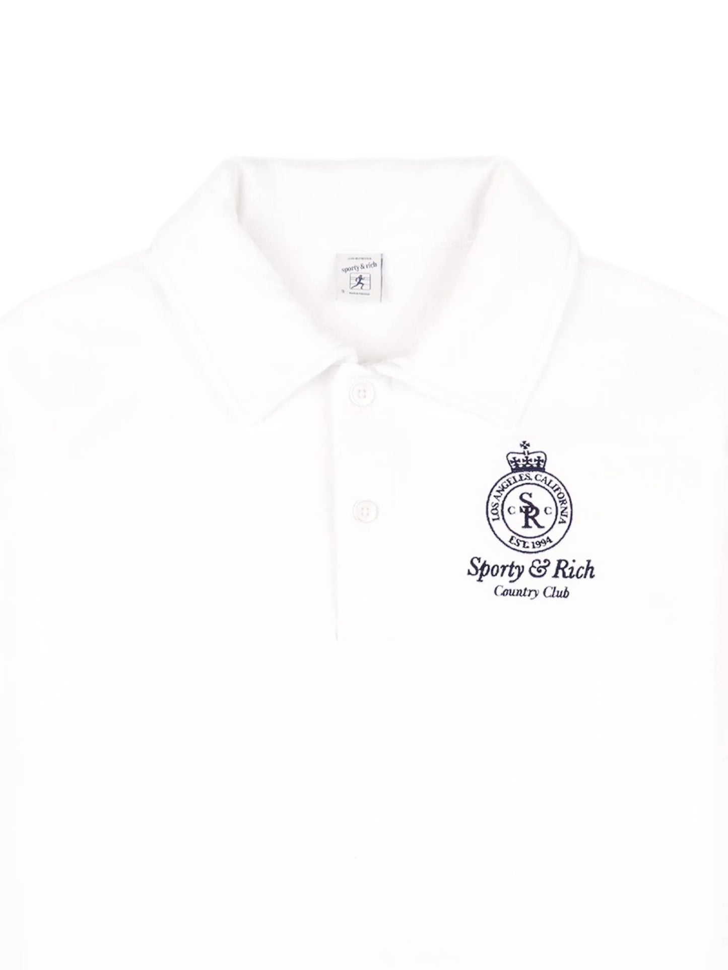 SPORTY & RICH WOMEN Crown Country Embroidered Cropped Polo Sweater White