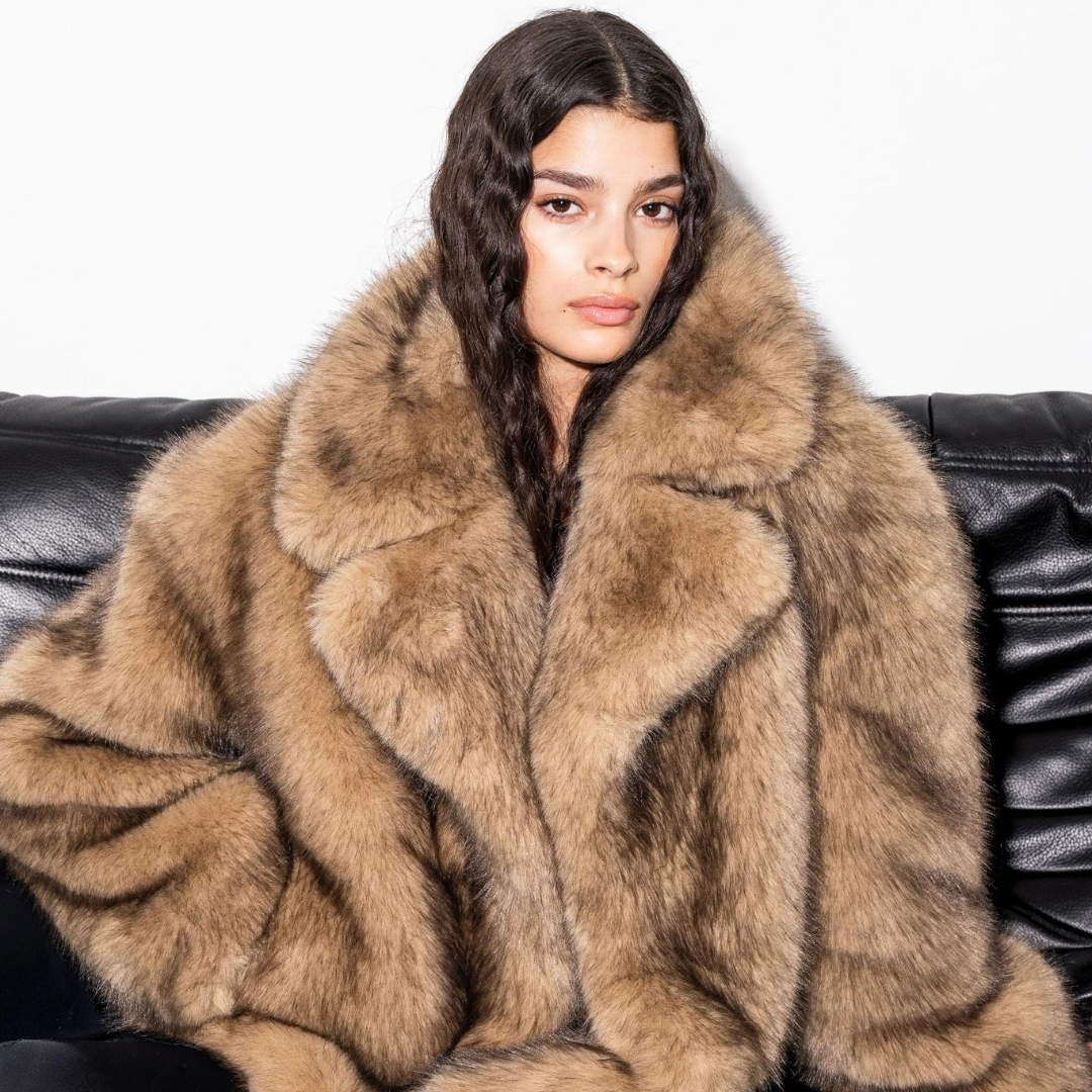 Biba coat is crafted from wool with a faux fur-like texture and shaped to an under-knee length, clean-lined silhouette. It has a concealed button closure, side pockets and a full lining.