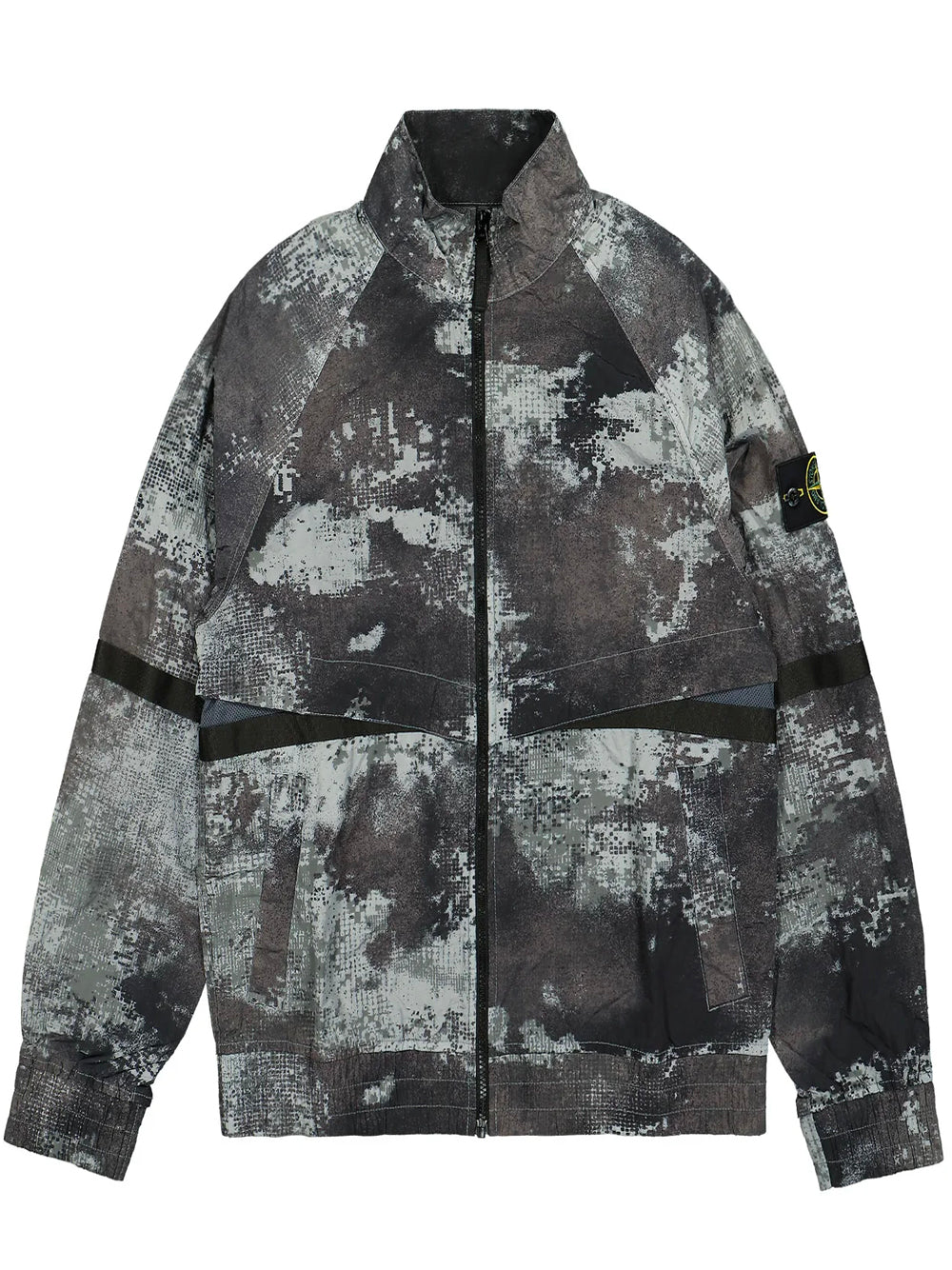 STONE ISLAND Compass-Badge Abstract-Print jacket Econyl Nylon Jacket Grey Black
