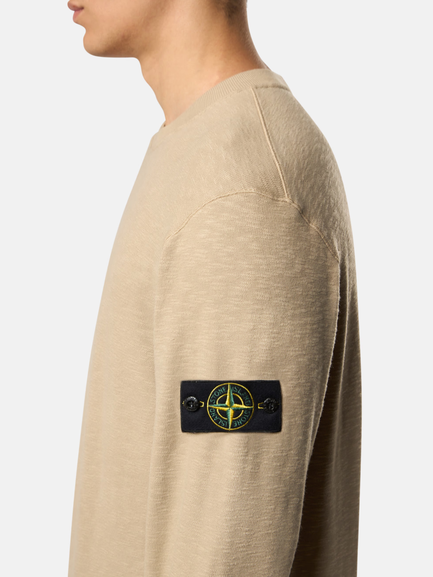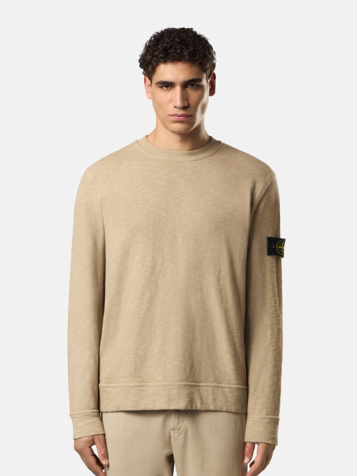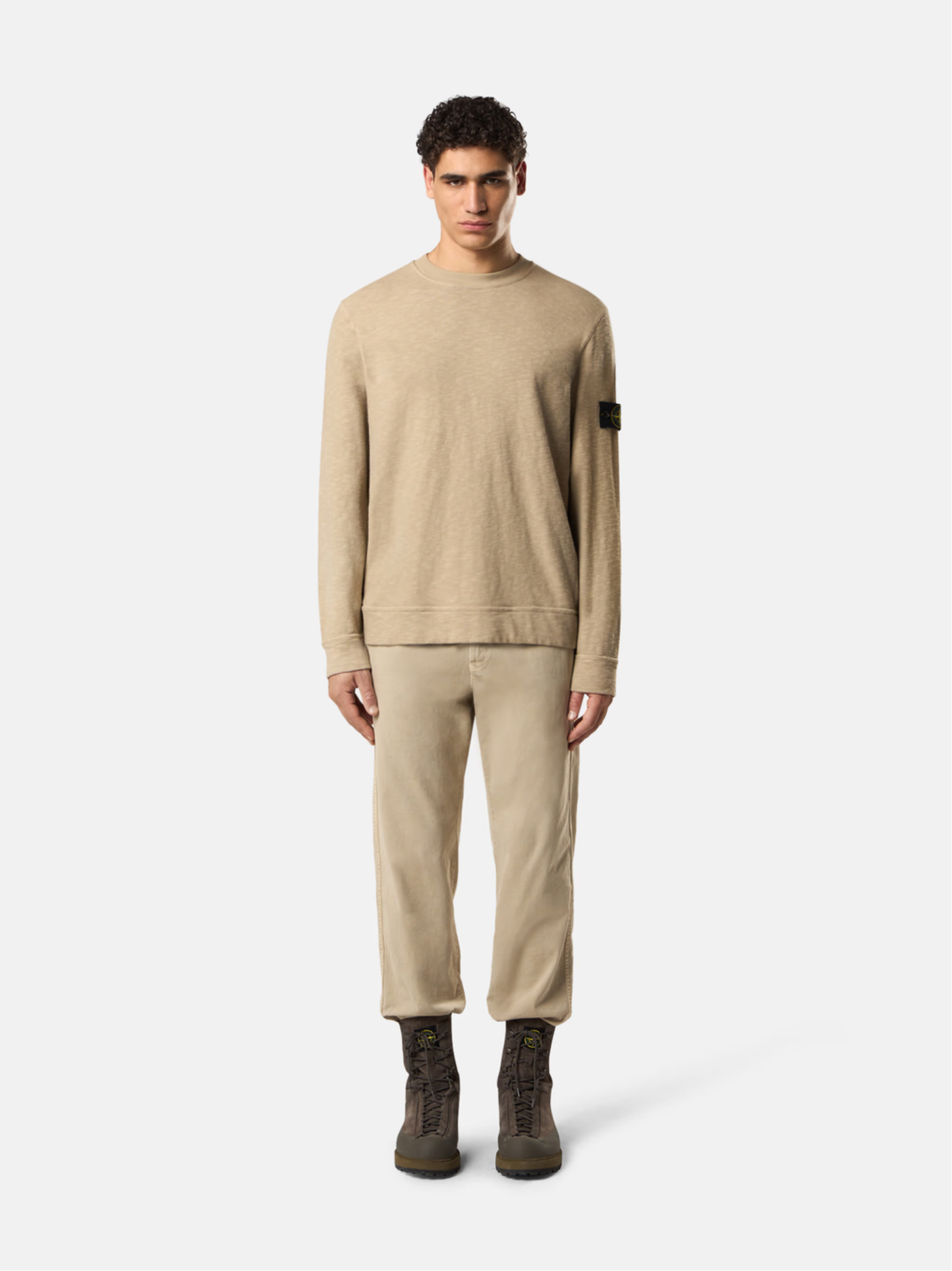 Crewneck sweatshirt in vanisé brushed heavy cotton jersey. Garment dyed. Ribbed neckline. Inlay under arms and on sides. Stone Island badge on left sleeve. Flat cuffs and bottom band. Regular fit.