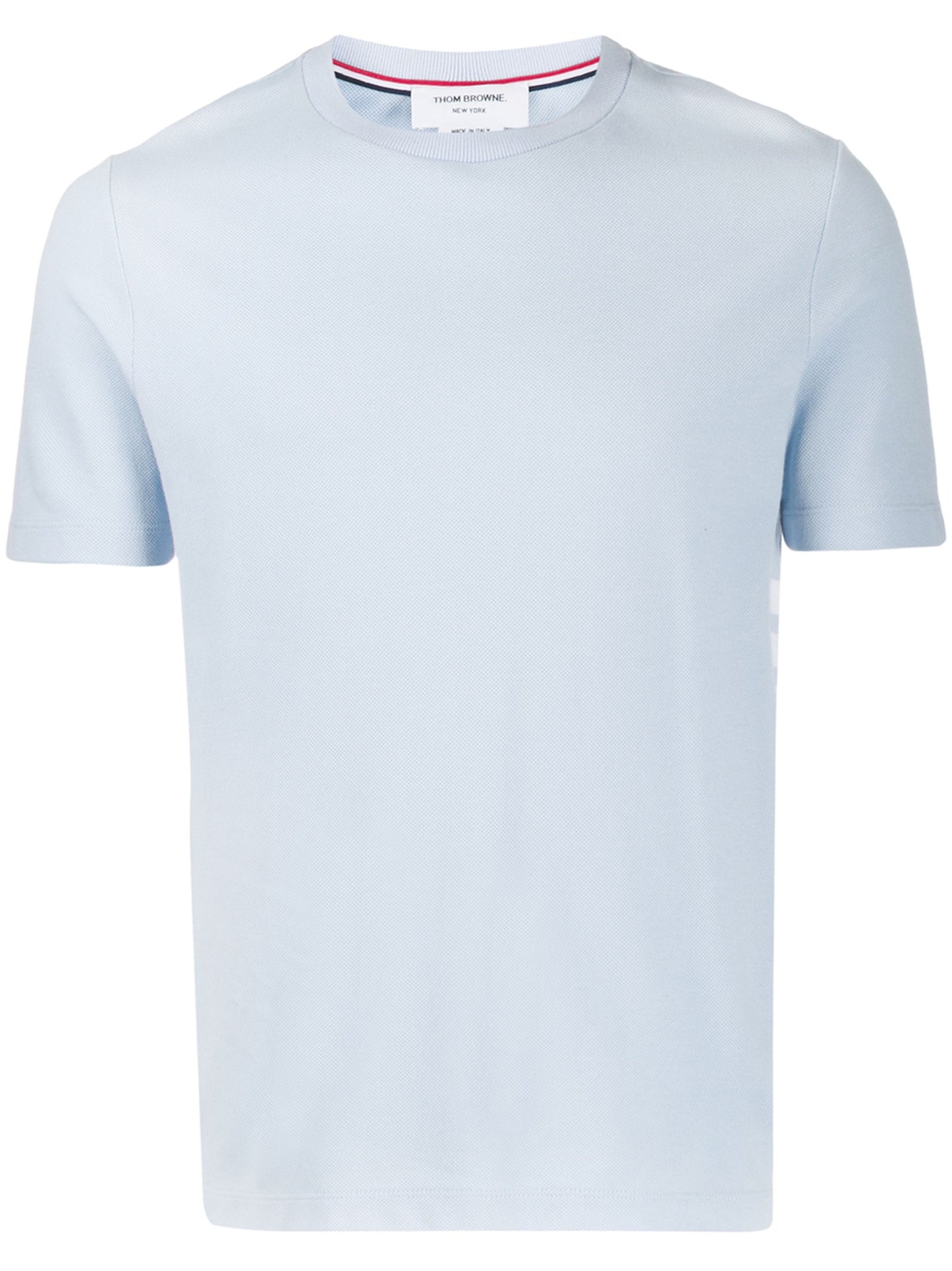 THOM BROWNE Short Sleeve 4 Bar RWB Stripe Cotton T-Shirt Light Blue