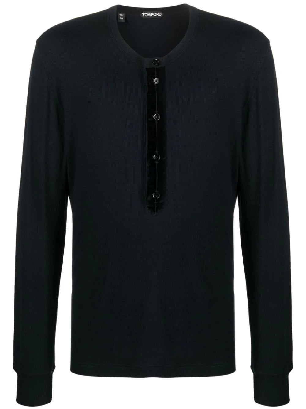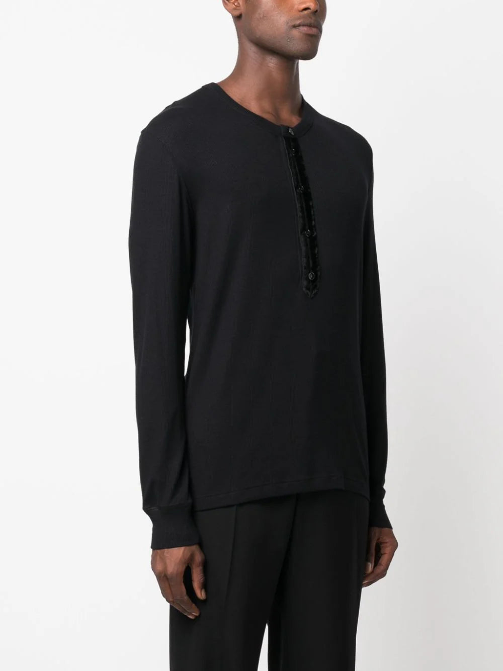 TOM FORD Henley Long Sleeve T-Shirt Black