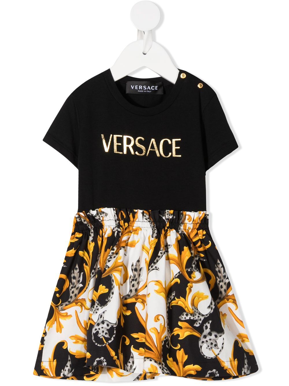 VERSACE KIDS Baby Baroque Print Dress Black/Gold