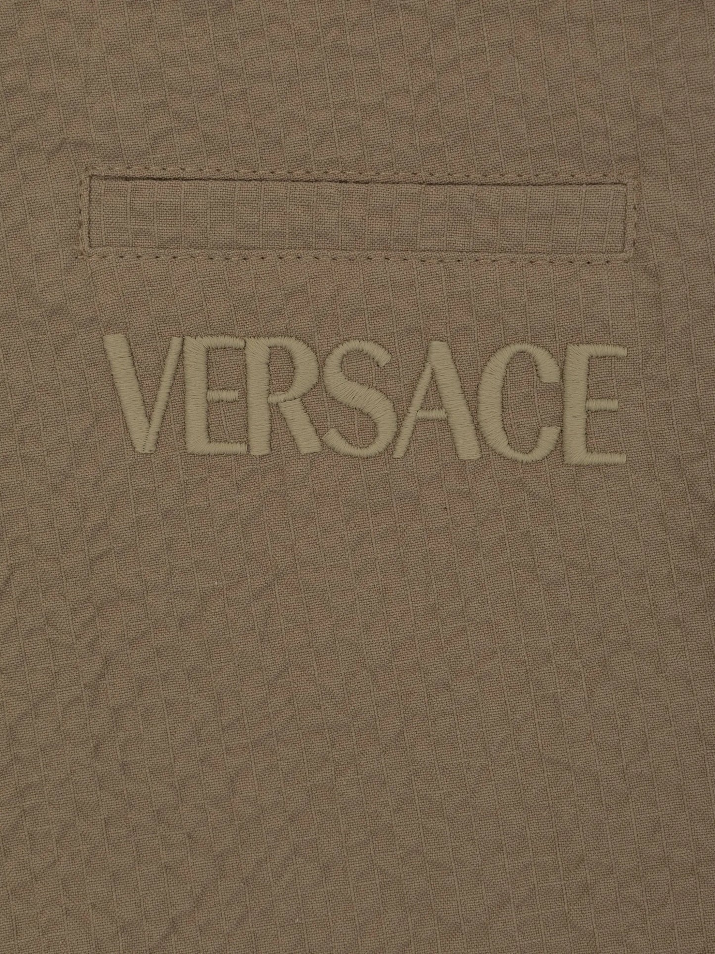 VERSACE KIDS Boys Seersucker Shorts Sand