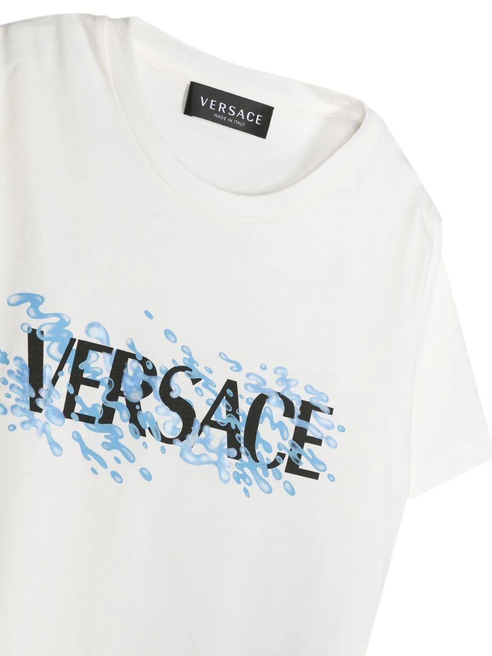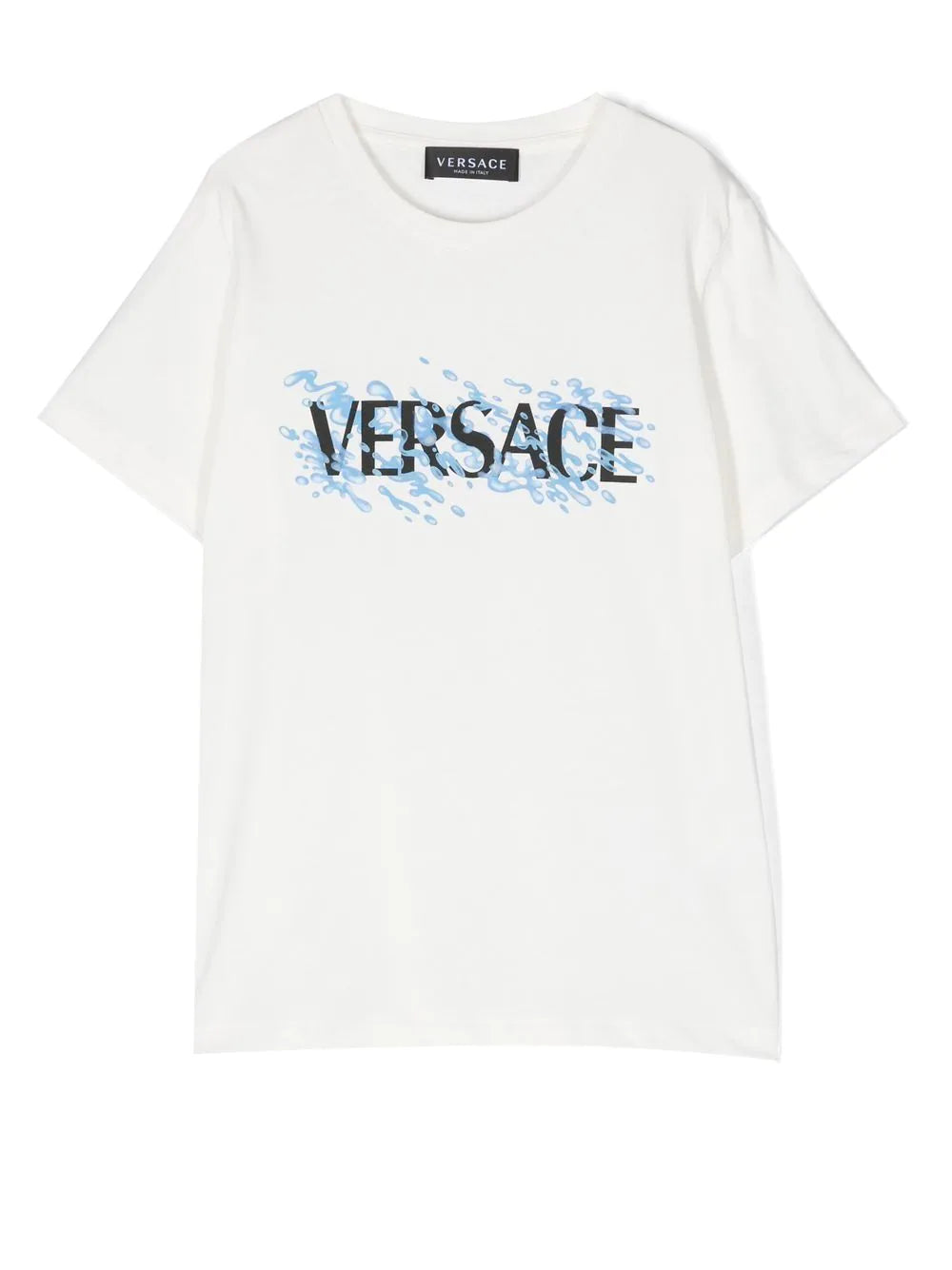 VERSACE KIDS Logo-print T-shirt White/Blue