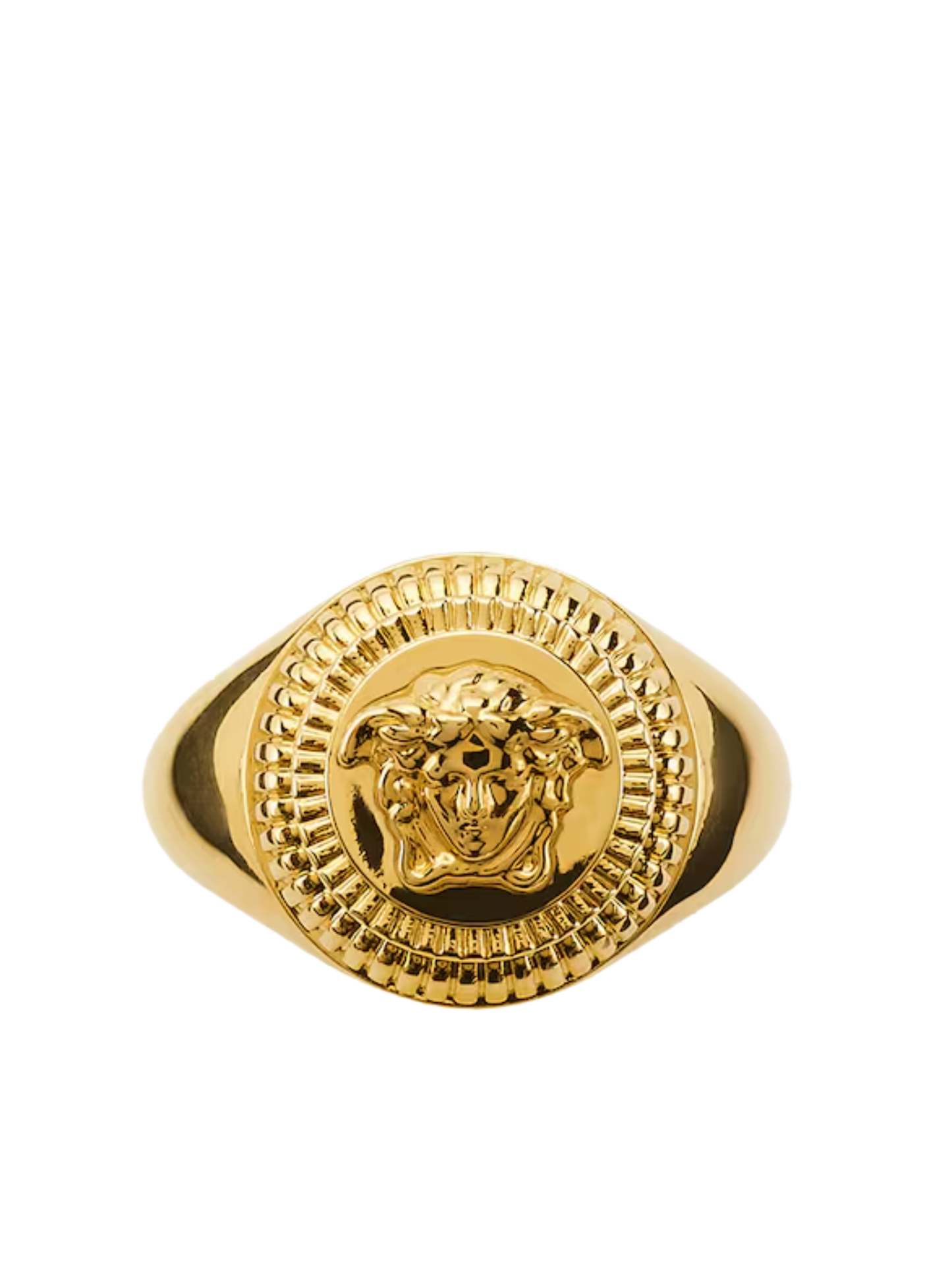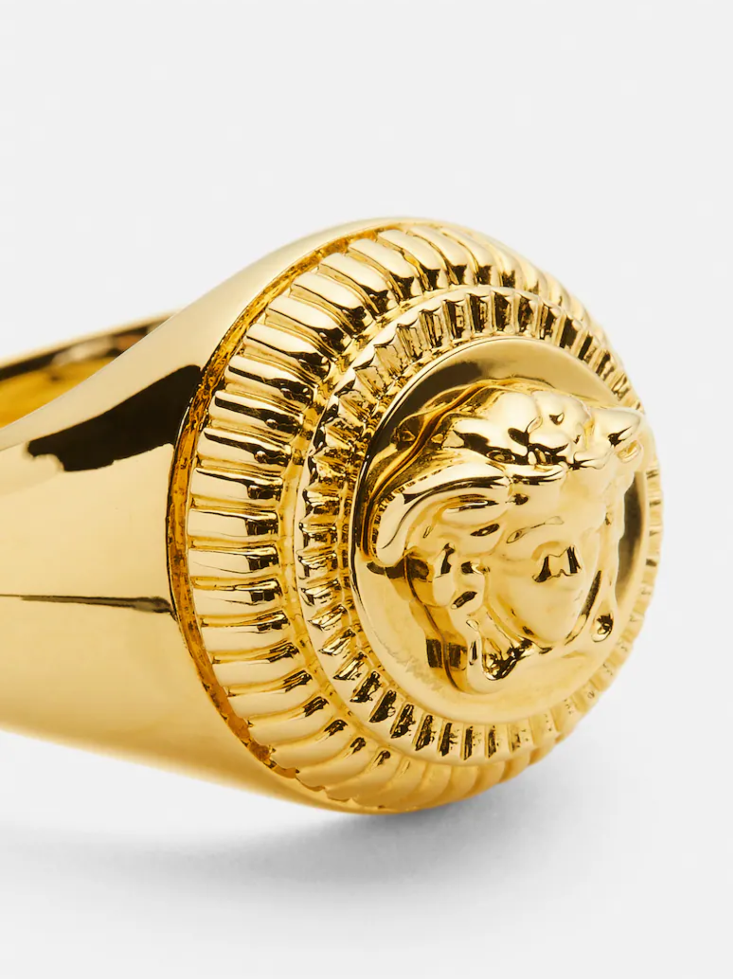 Gianni Versace's adoration for Greek mythology originated most of the fashion house's signature motifs, which often decorate its creations. The emblematic Medusa Head is one of them, taking focus on gold-tone ring.