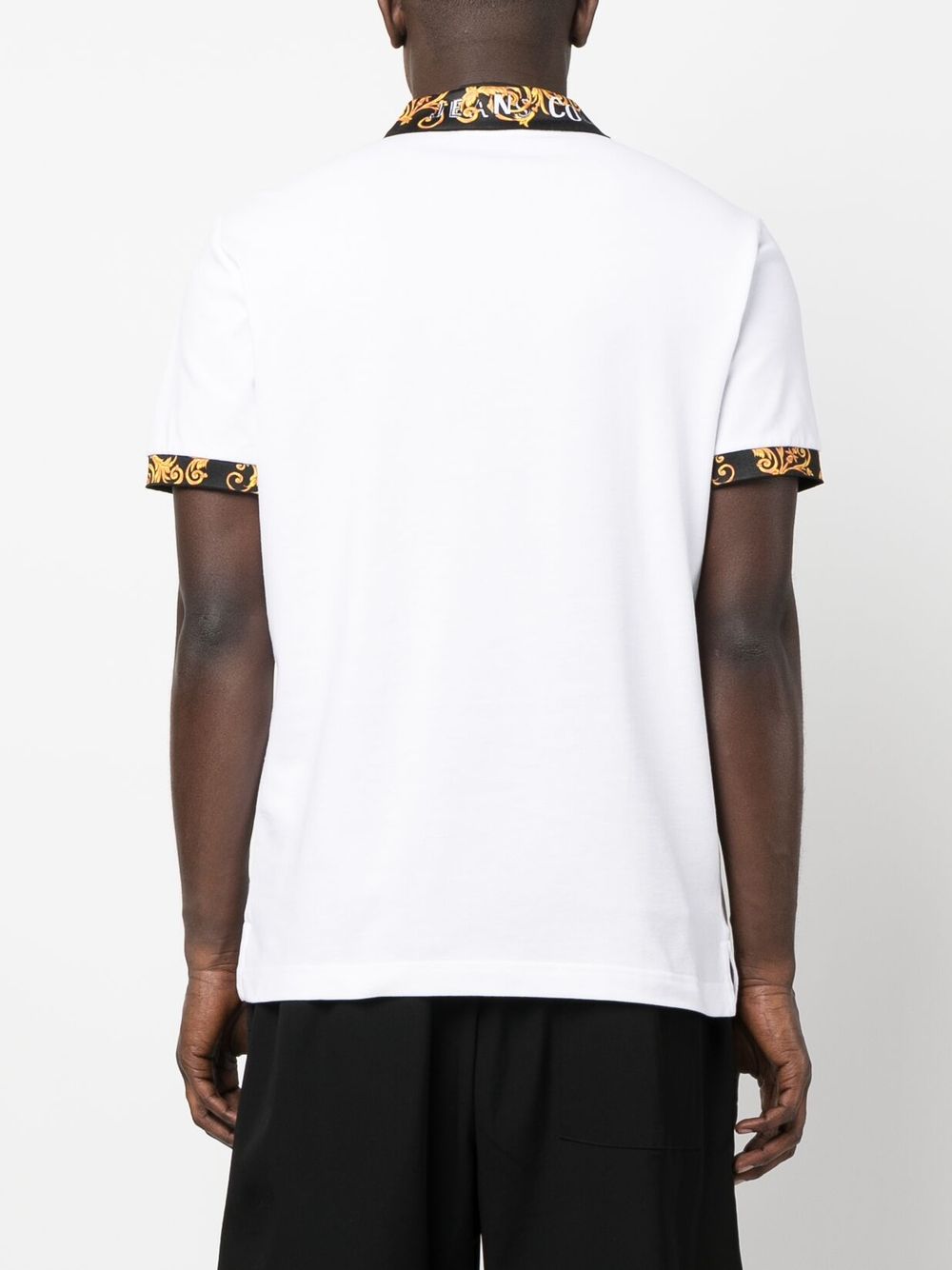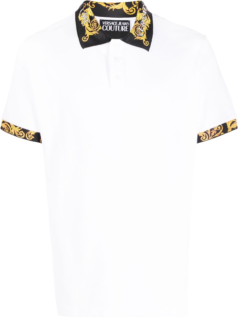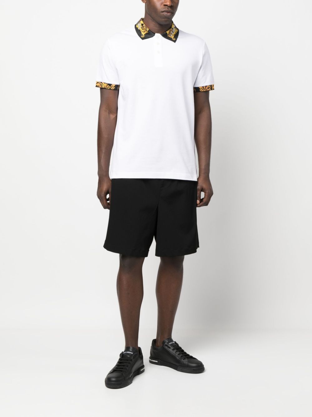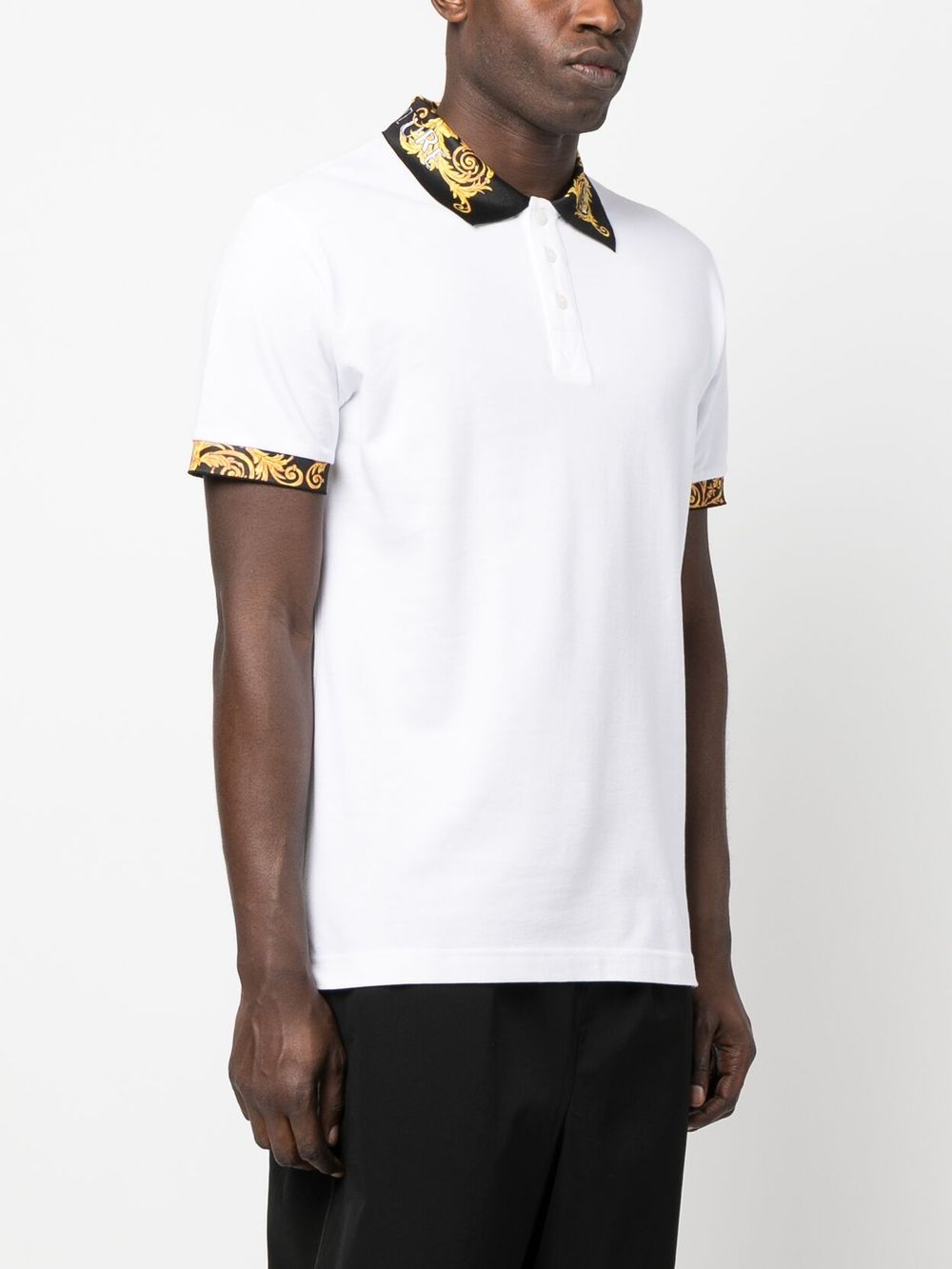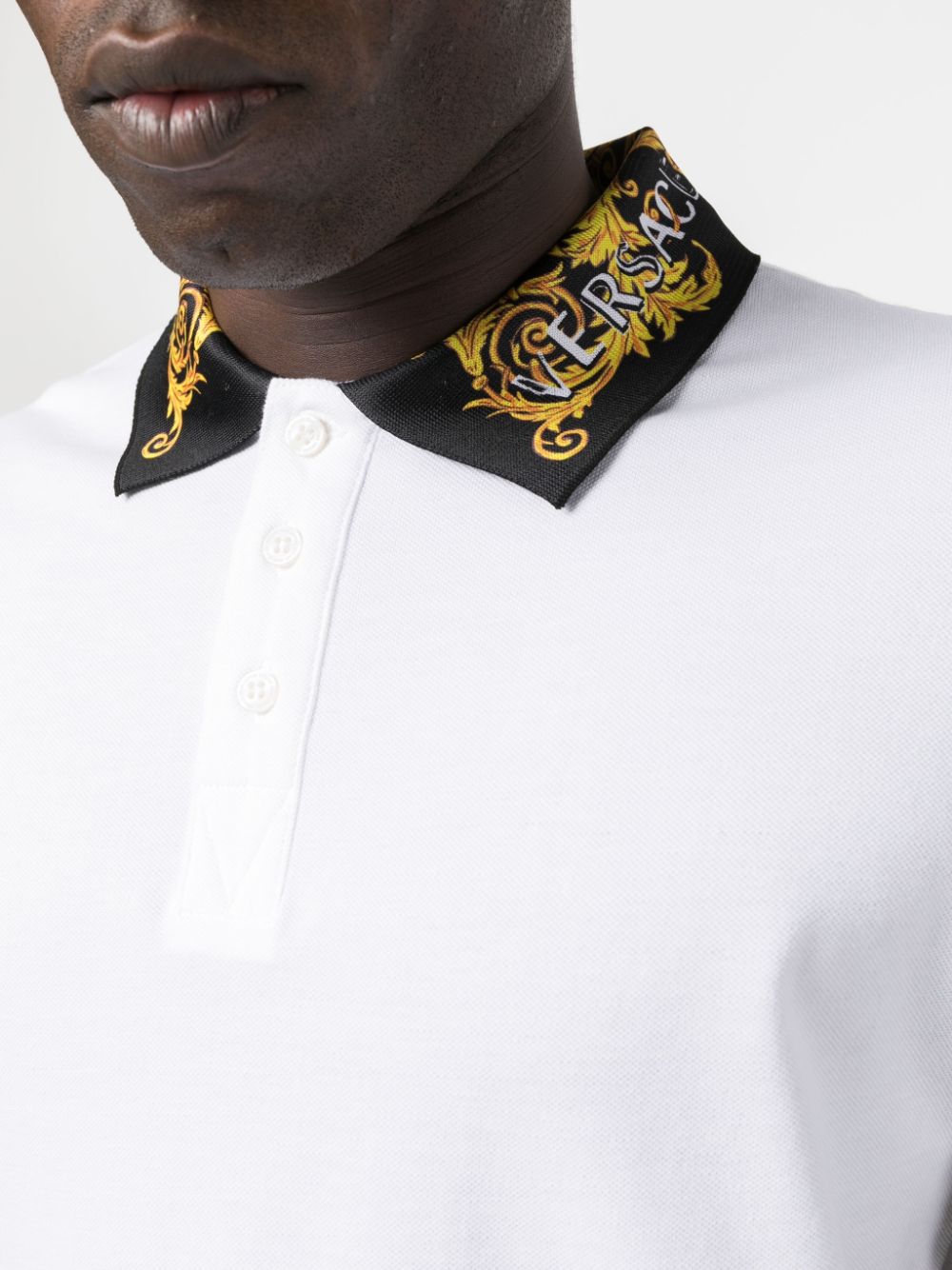 VERSACE MEN Baroque Collar Print Polo Shirt White/Black/Gold