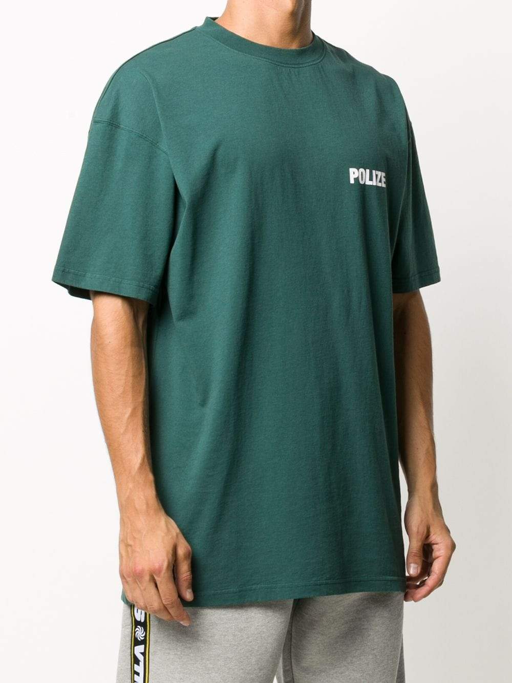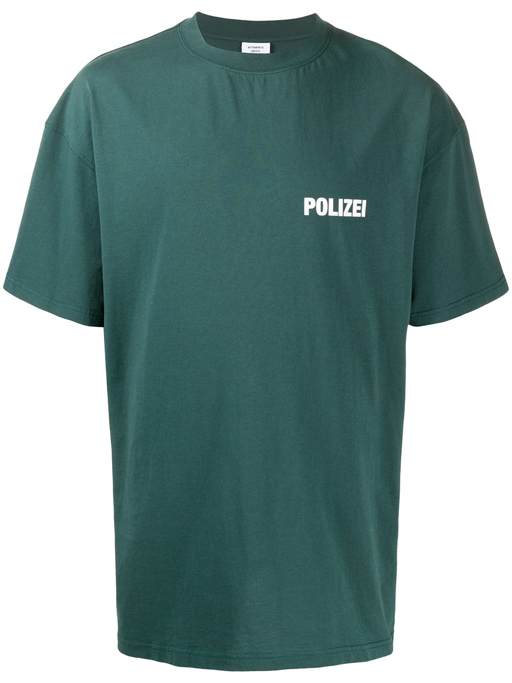 Green cotton Polizei crew neck T-shirt from Vetements featuring a crew neck, short sleeves, an oversized fit and a straight hem.