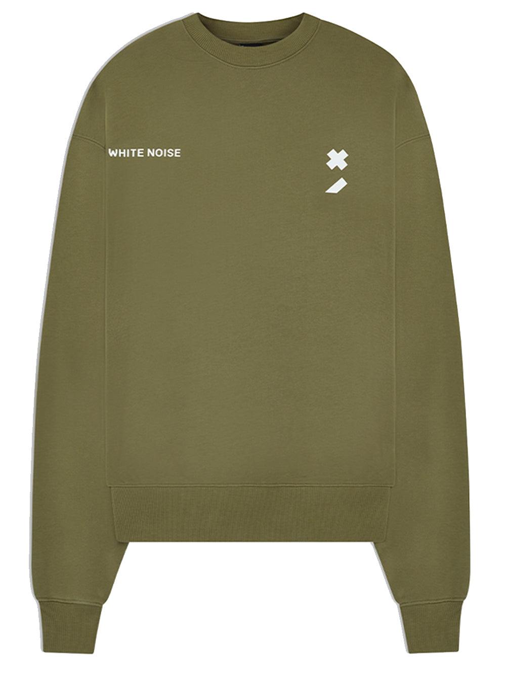 TWIN LOGO SWEATSHIRT' in Khaki is crafted from a premium loopback jersey, with a relaxed fit. It features a the WHITE NOISE™ logotype on the right chest and the signature icon on the left chest.