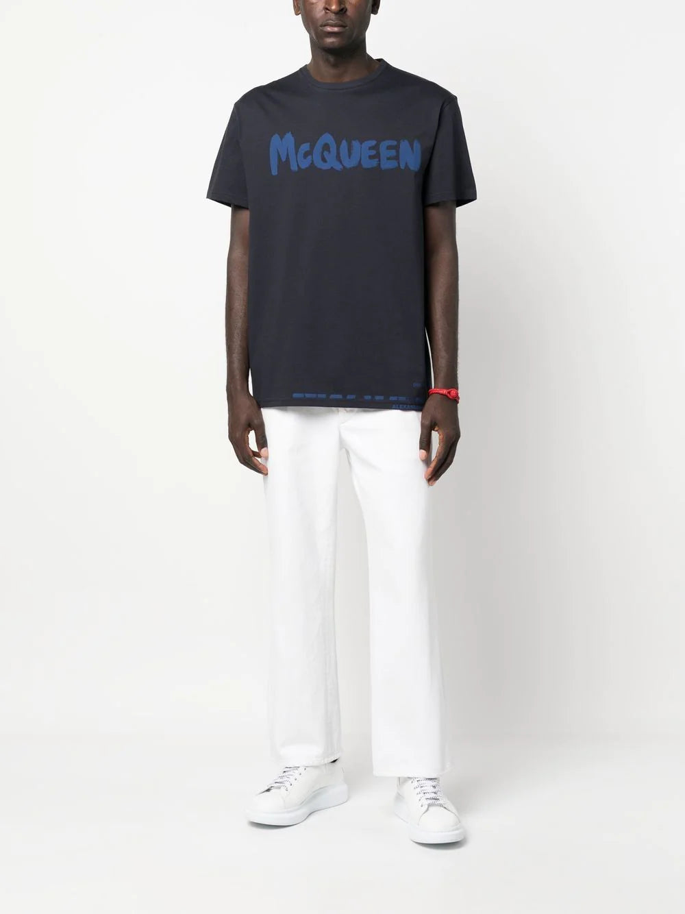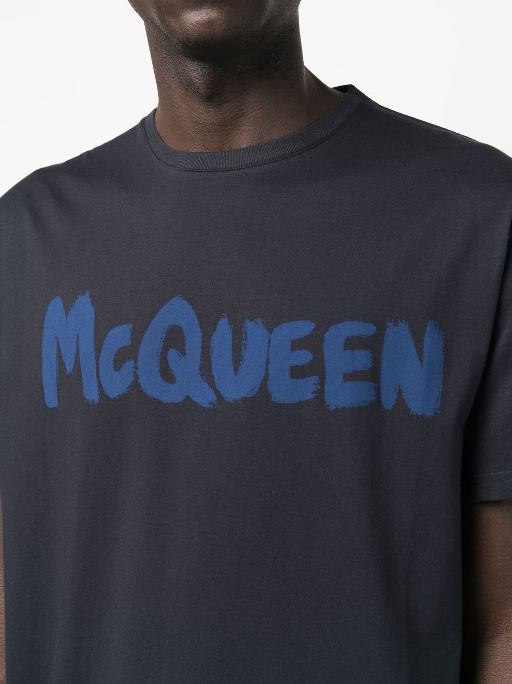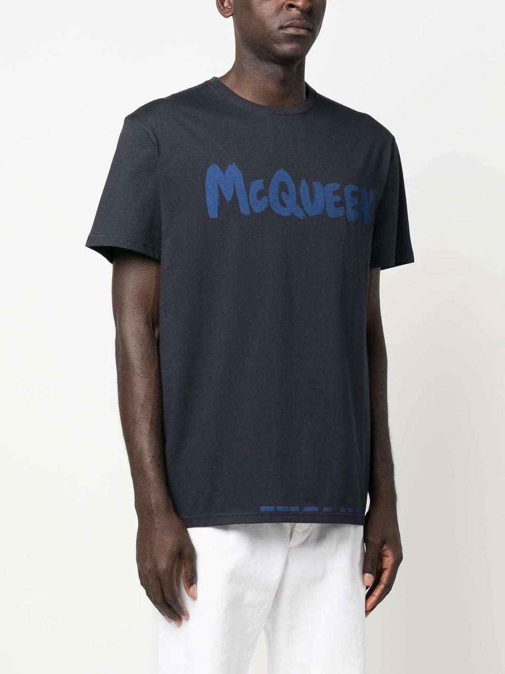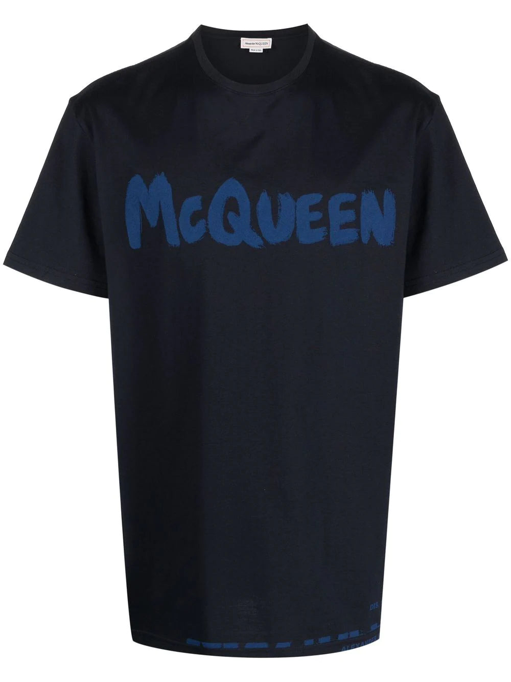 تيشيرت ألكسندر ماكوين بطبعة شعار جرافيتي باللون الأزرق الداكن/الأزرق