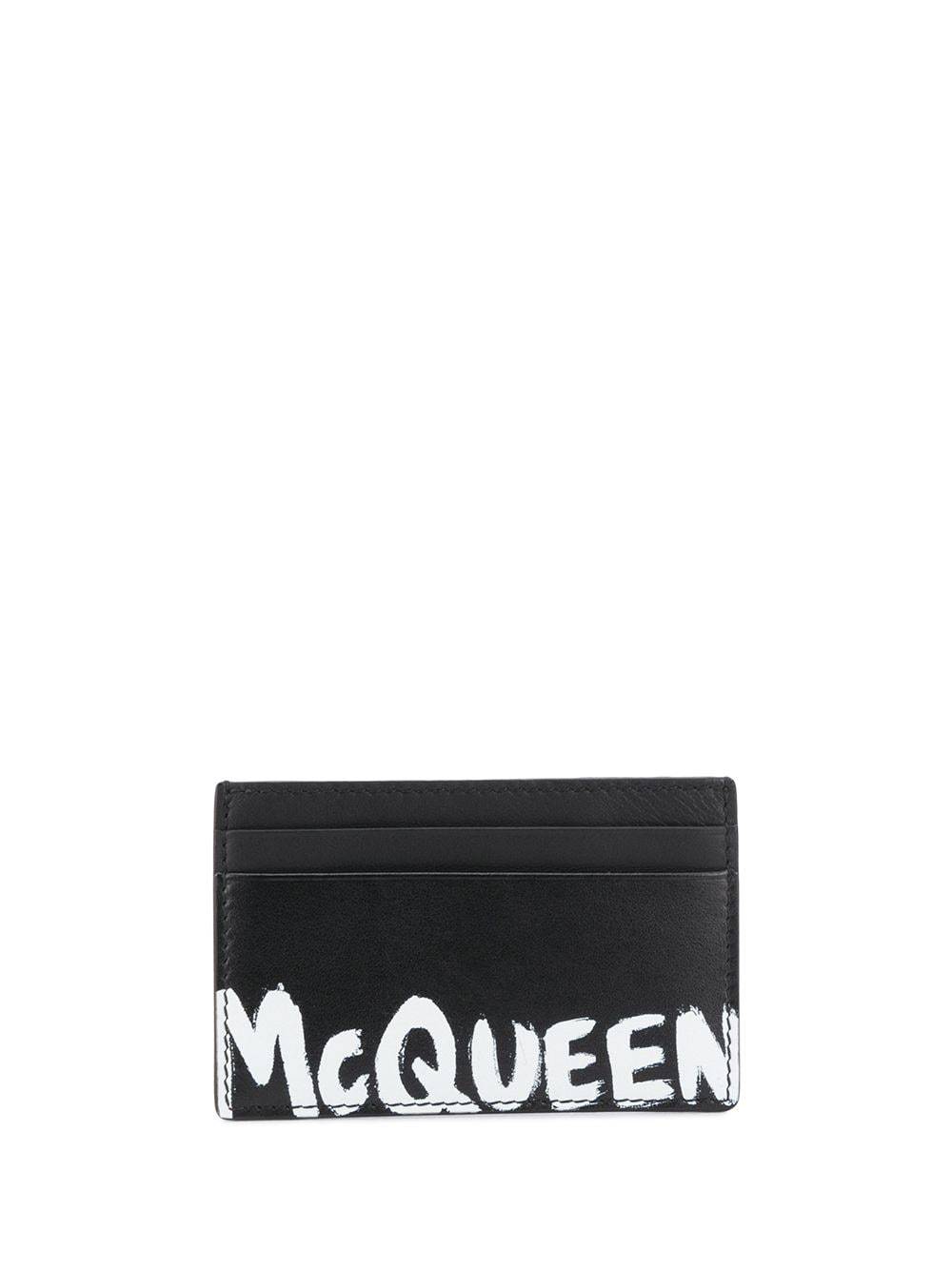 حامل بطاقات مطبوع عليه جرافيتي من ألكسندر ماكوين باللون الأسود