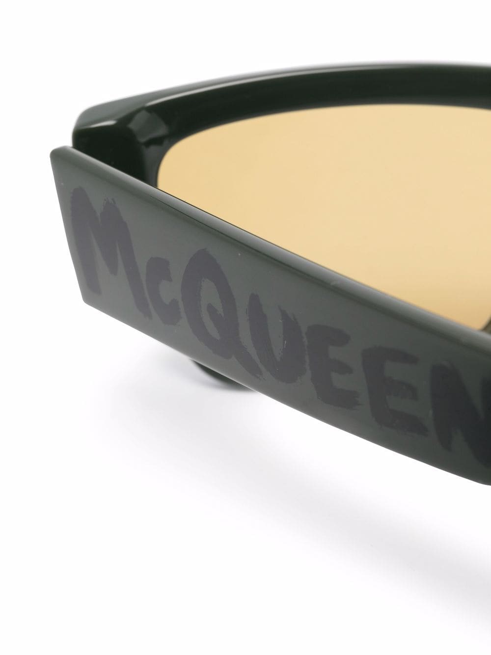 إطار مستطيل أخضر داكن مع عدسات صفراء اللون، يُضفي على نظارات ألكسندر ماكوين الشمسية لمسة عصرية مميزة. ويكتمل الطابع العصري لهذا الإكسسوار بشعار جرافيكي مطبوع على الذراع.