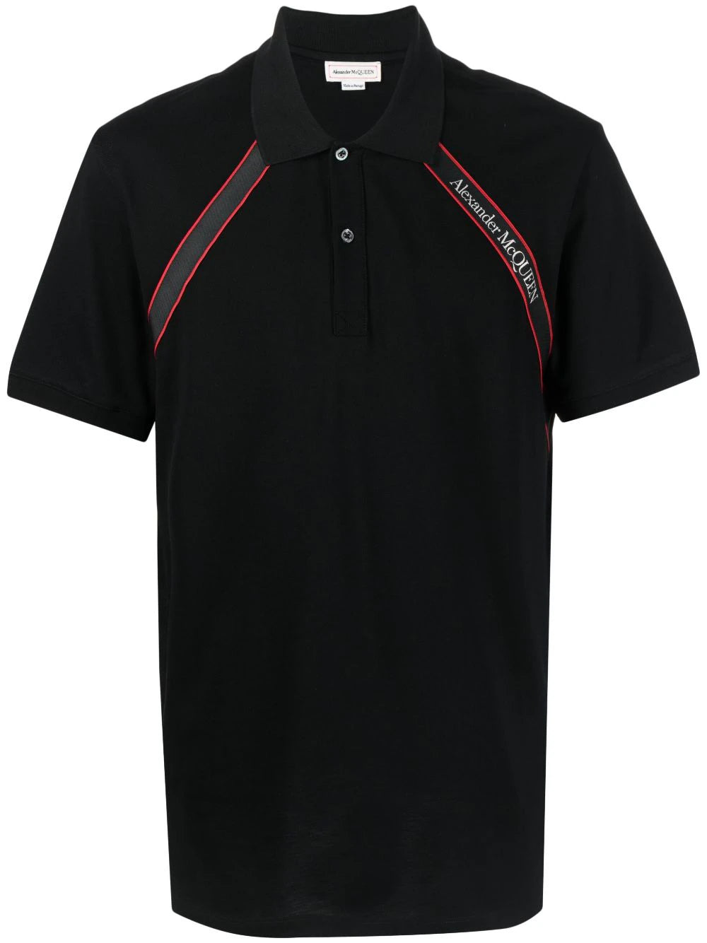 تفضل ألكسندر ماكوين لوحات الألوان الداكنة، حيث قامت بتحديث هذا القميص البولو الأسود الكلاسيكي بشريط الشعار على مقدمته للحصول على لمسة نهائية فريدة من نوعها تحمل العلامة التجارية.