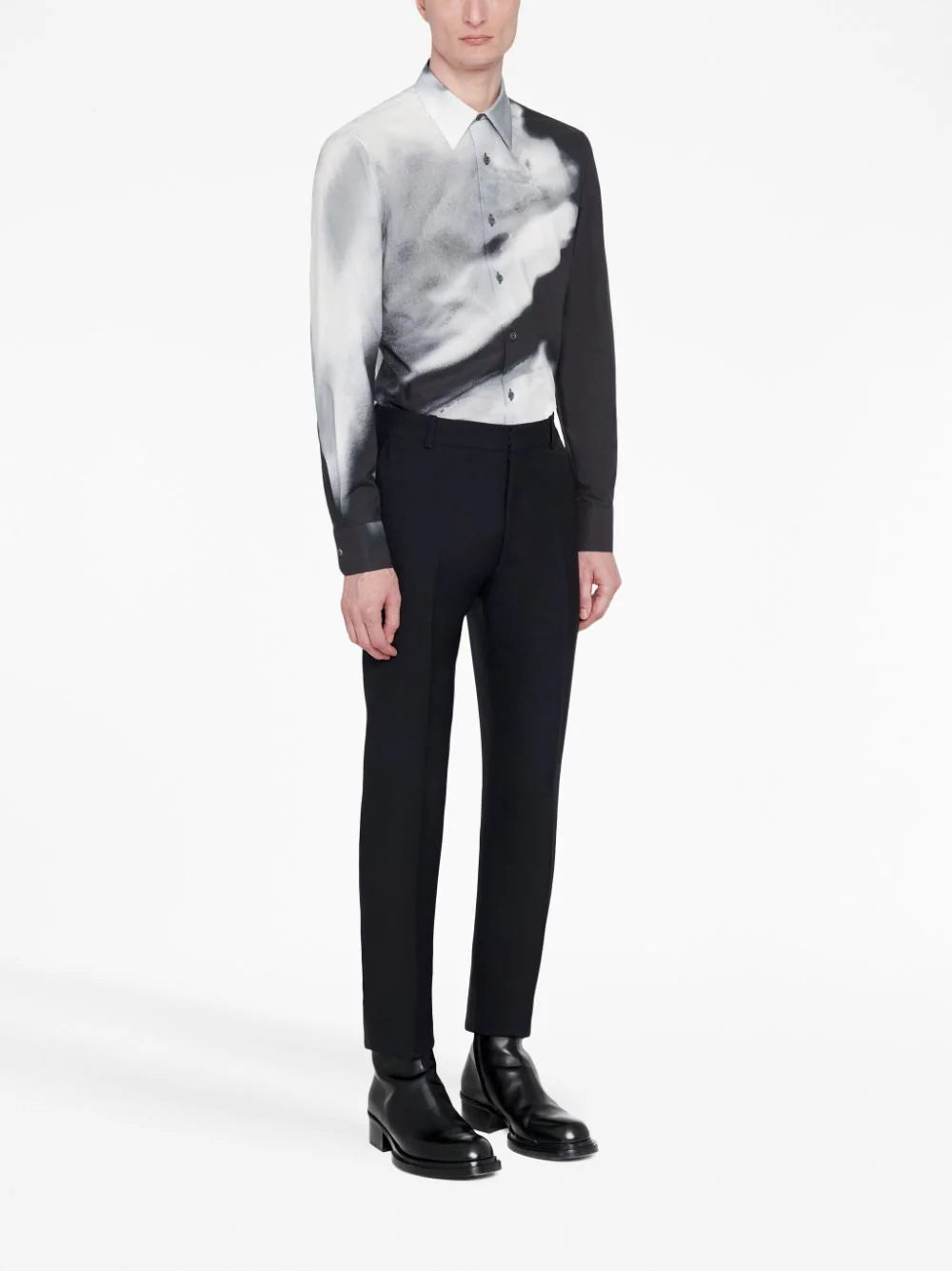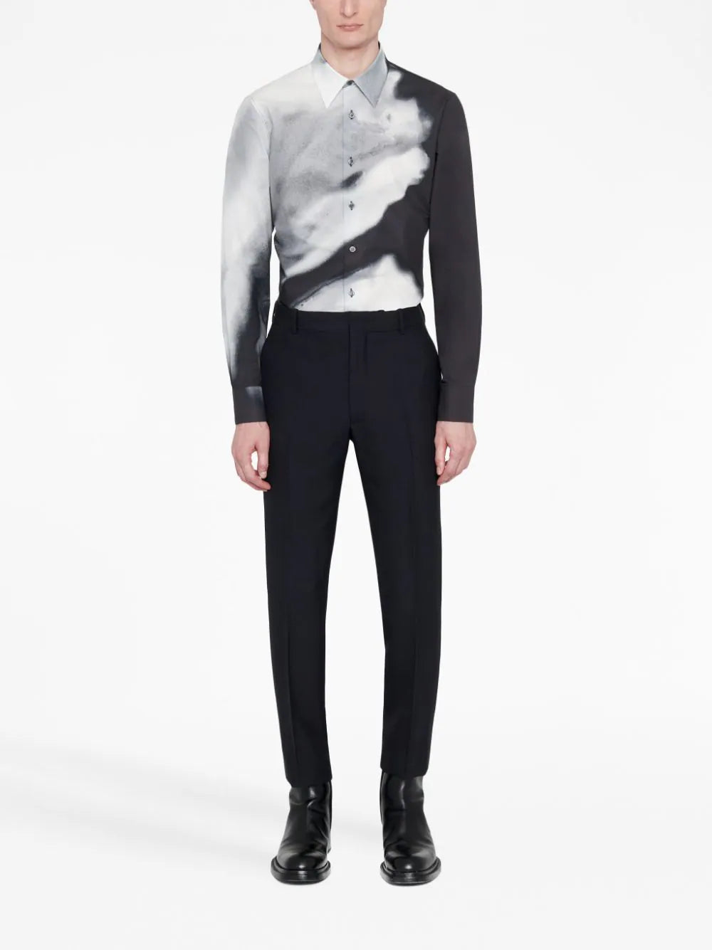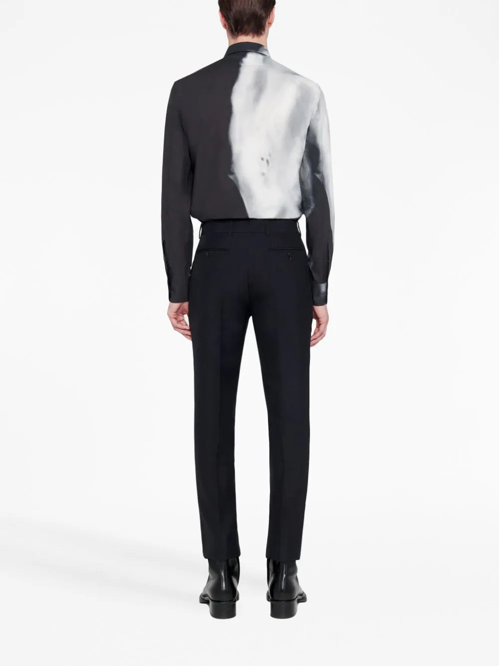بنطال ألكسندر ماكوين المُفصّل هذا يمزج بين التمرد والتقاليد، وهو ما تشتهر به العلامة التجارية. يتميز هذا البنطال الأسود بجيبين جانبيين وجيبين خلفيين مُنفصلين. كما أنه مُزوّد بسحاب مخفي وخطاف للإغلاق.