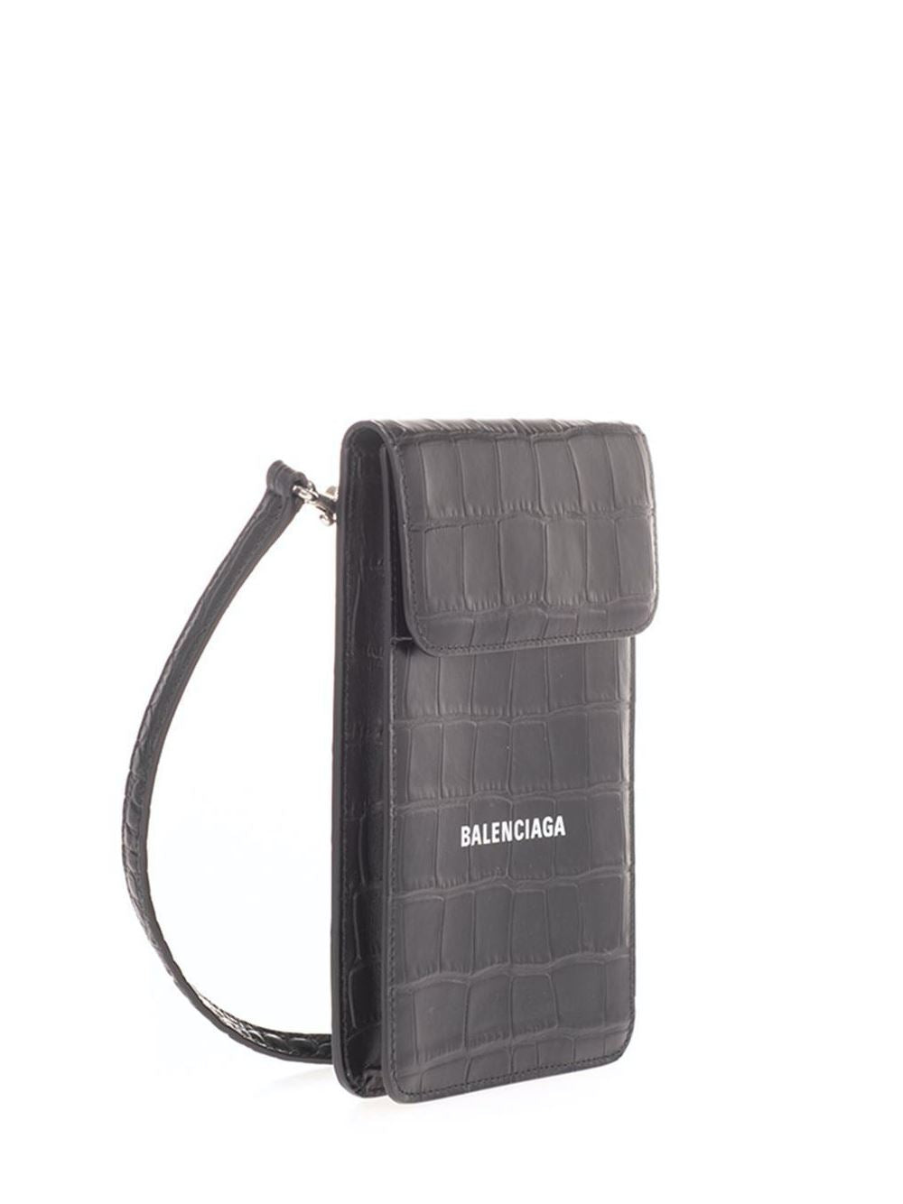 حقيبة جانبية بشعار تمساح باللون الأسود