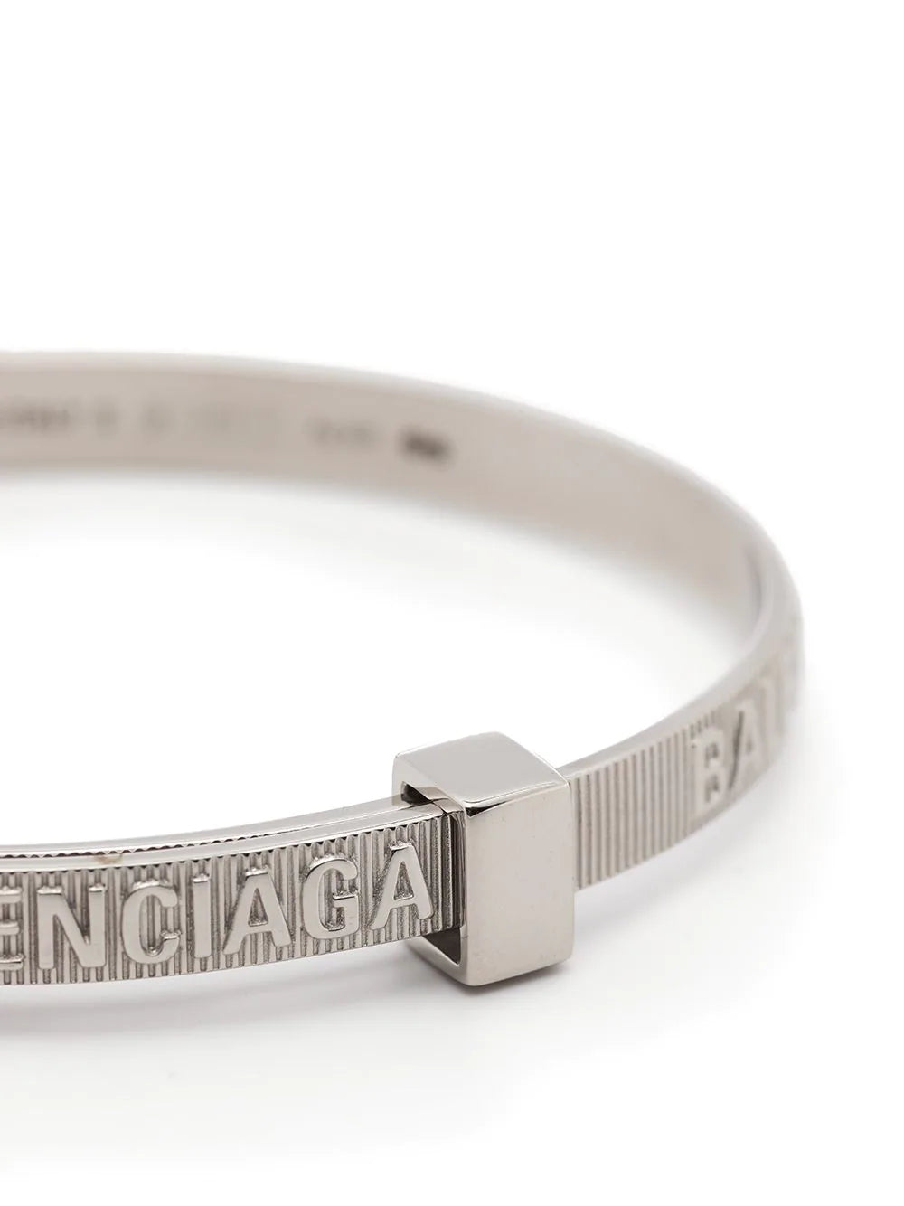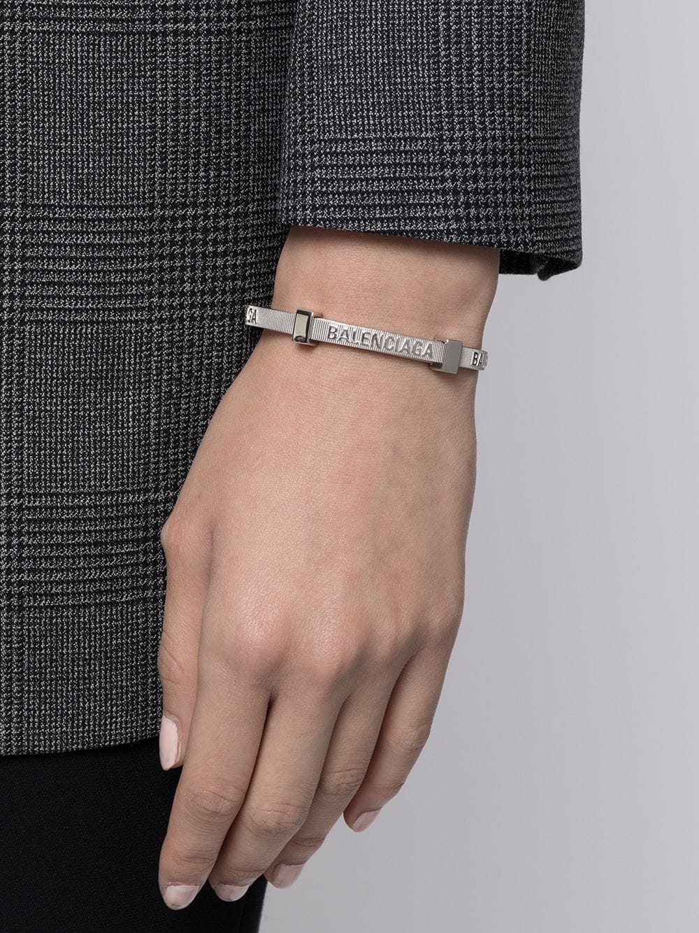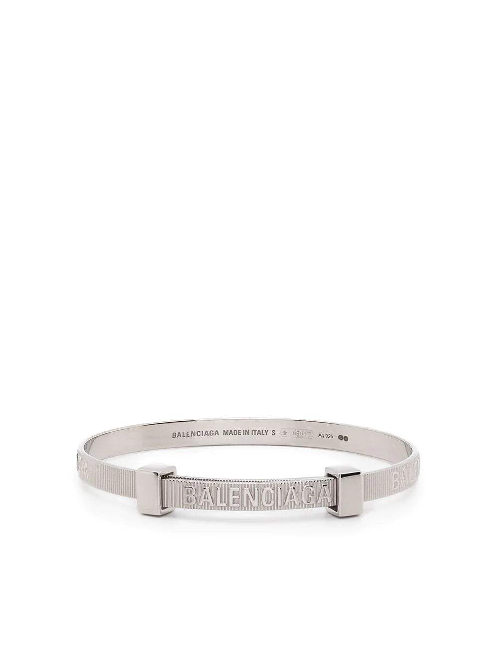 متمسكةً بجمالياتها المميزة، تقدم بالنسياغا سوارًا فضيًا مخططًا بقوة. مصنوع من الفضة المطلية، ومزين بشعار العلامة التجارية المحفور على واجهته.