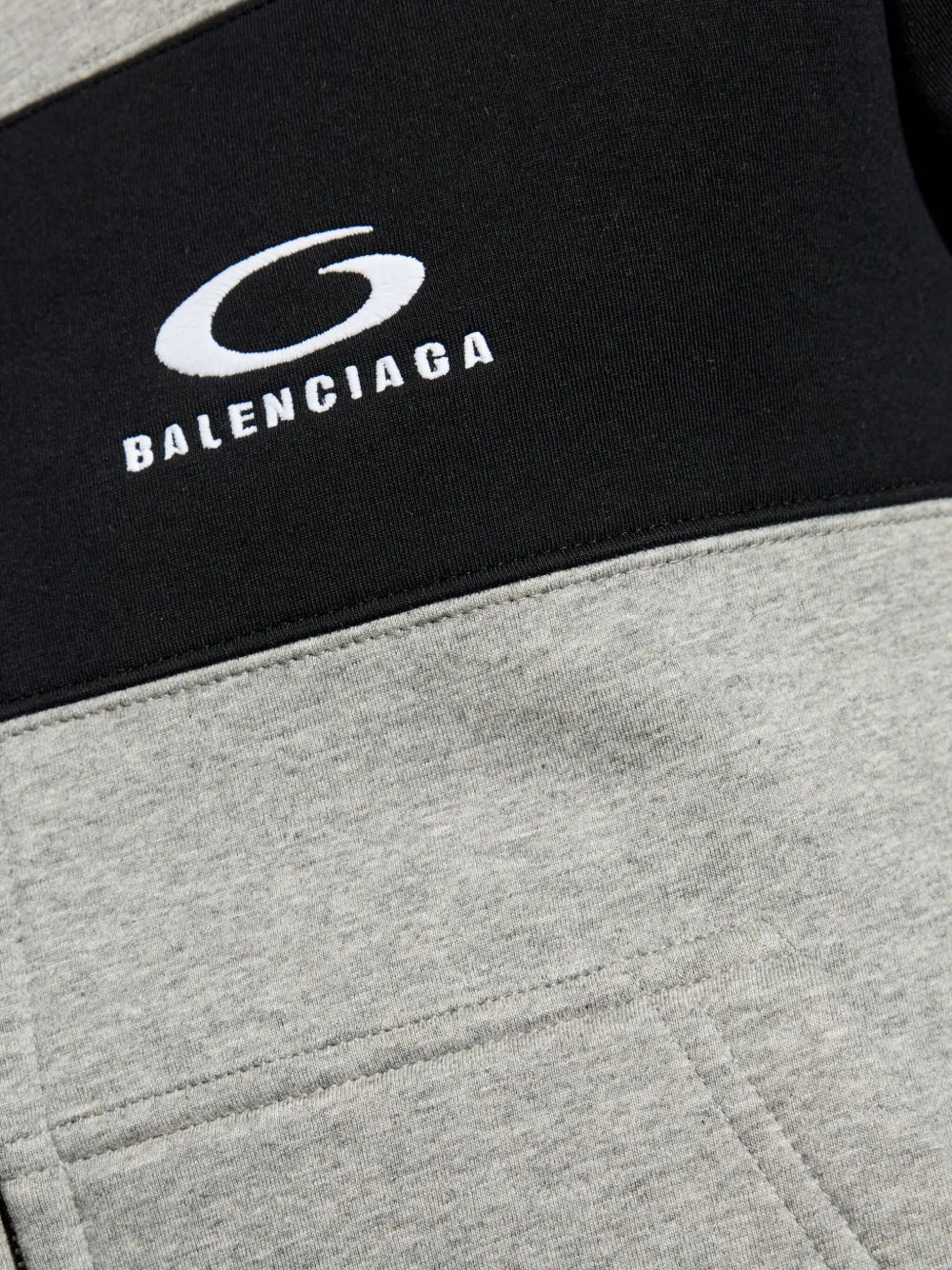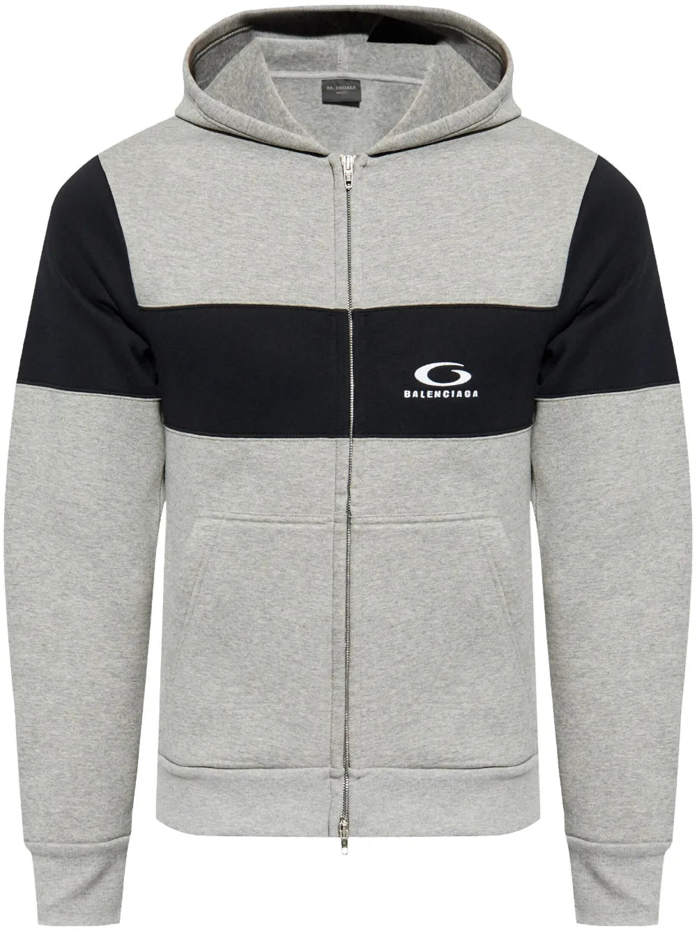BALENCIAGA Logo Embroidered Zipped Hoodie Heather Grey