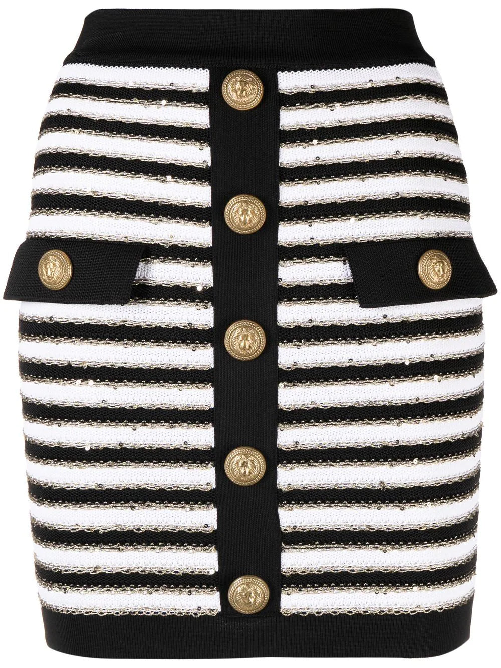 تنورة محبوكة بأزرار للنساء من بالمان - أسود/أبيض