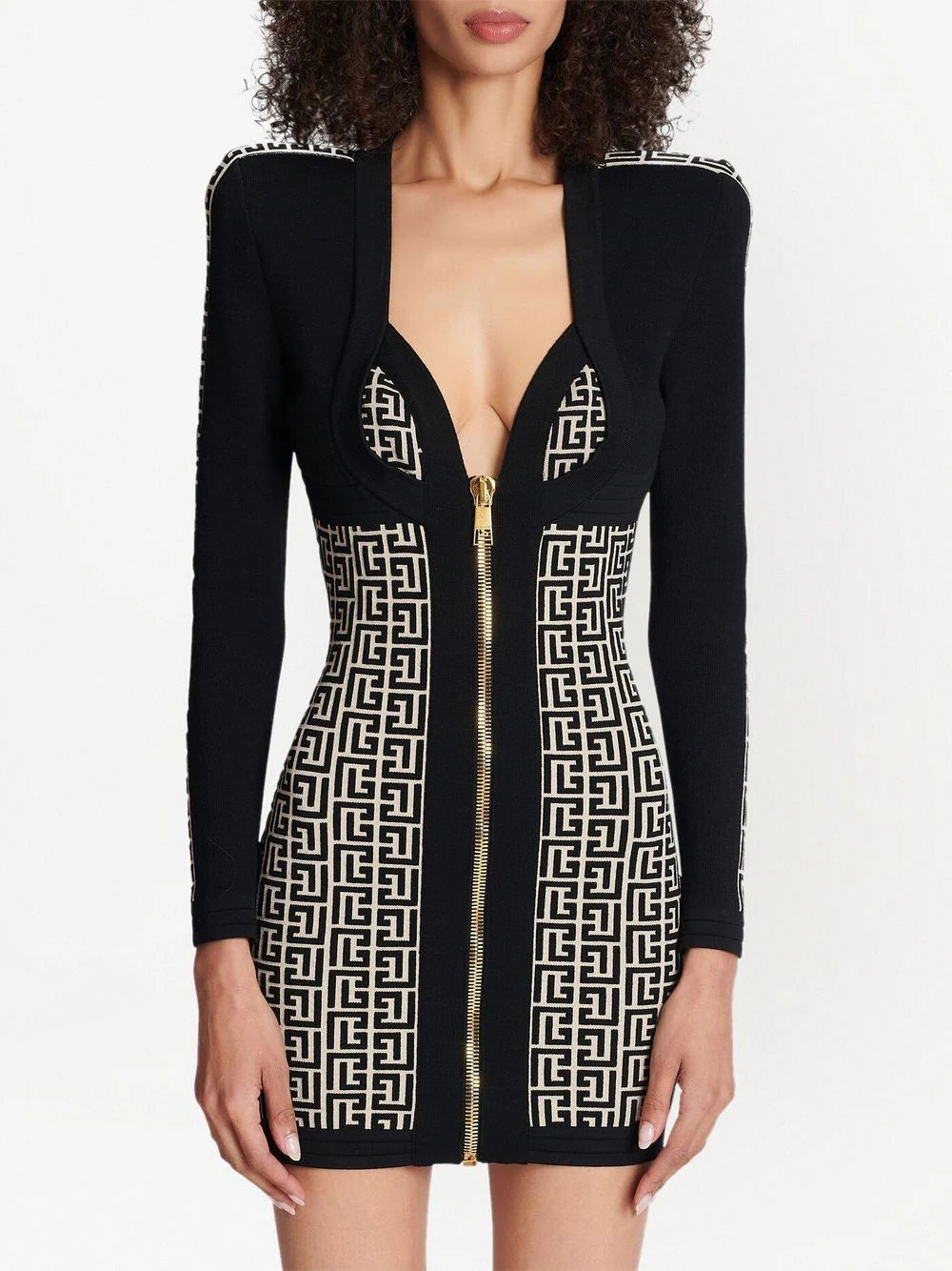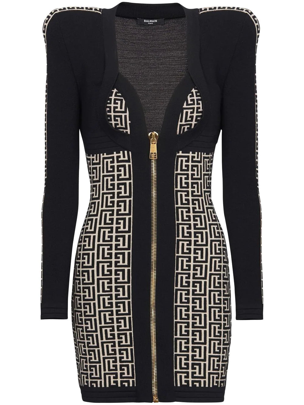 فستان قصير محبوك من BALMAIN للنساء، مقاس كبير، أسود/أبيض