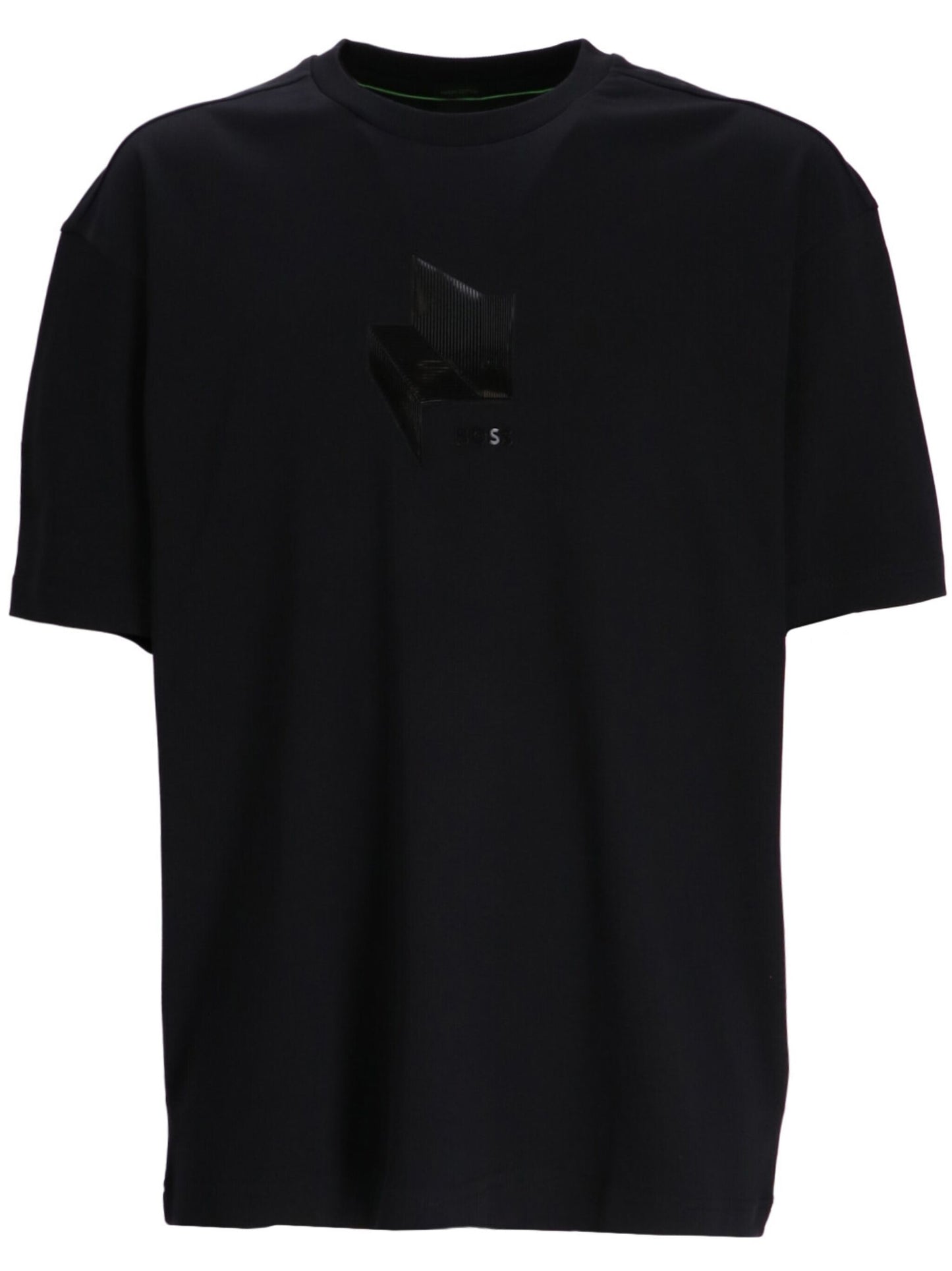 تي شيرت قطني أسود بطبعة شعار BOSS Centre