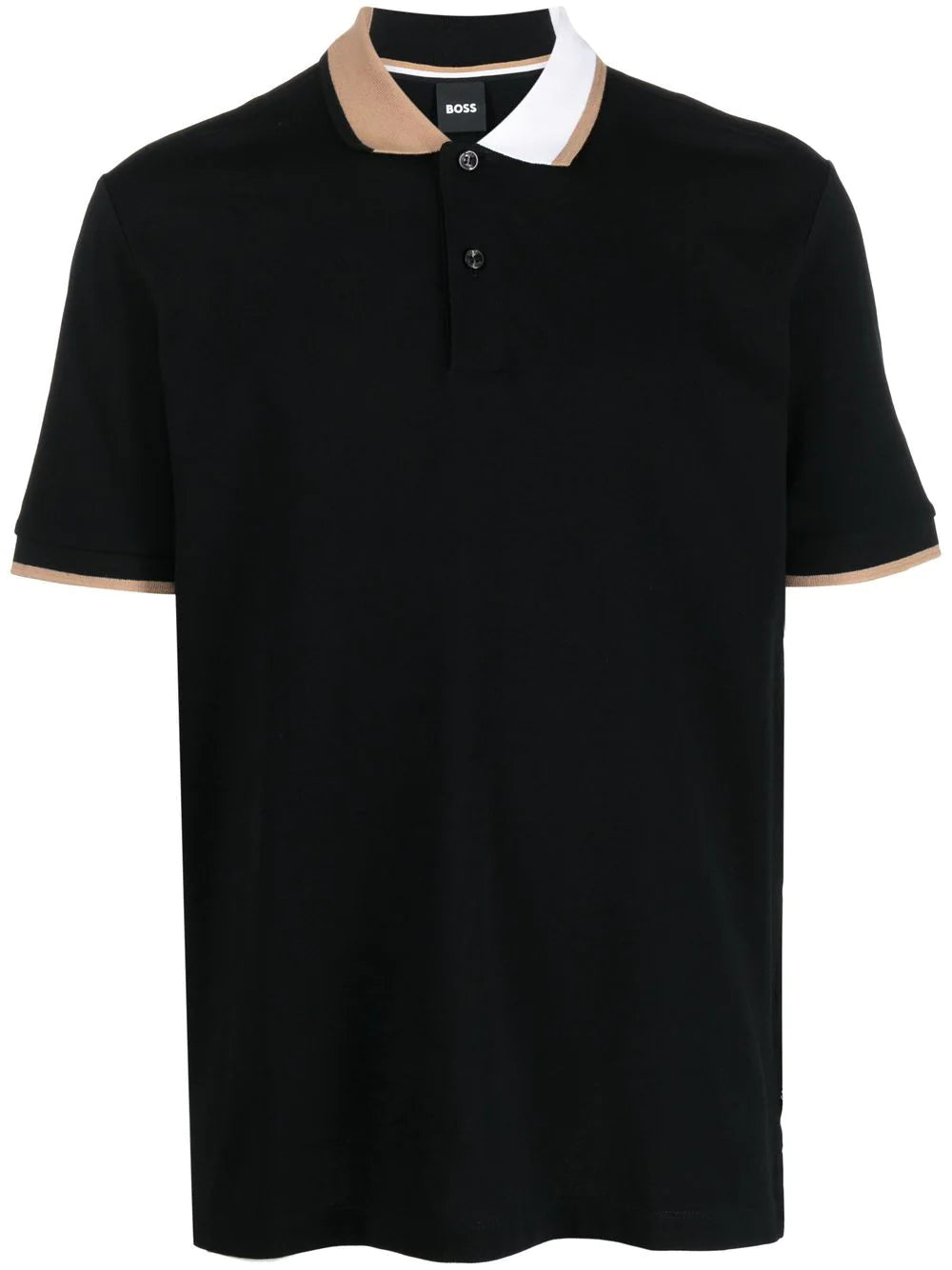قميص بولو BOSS ذو الياقة المتباينة باللون الأسود