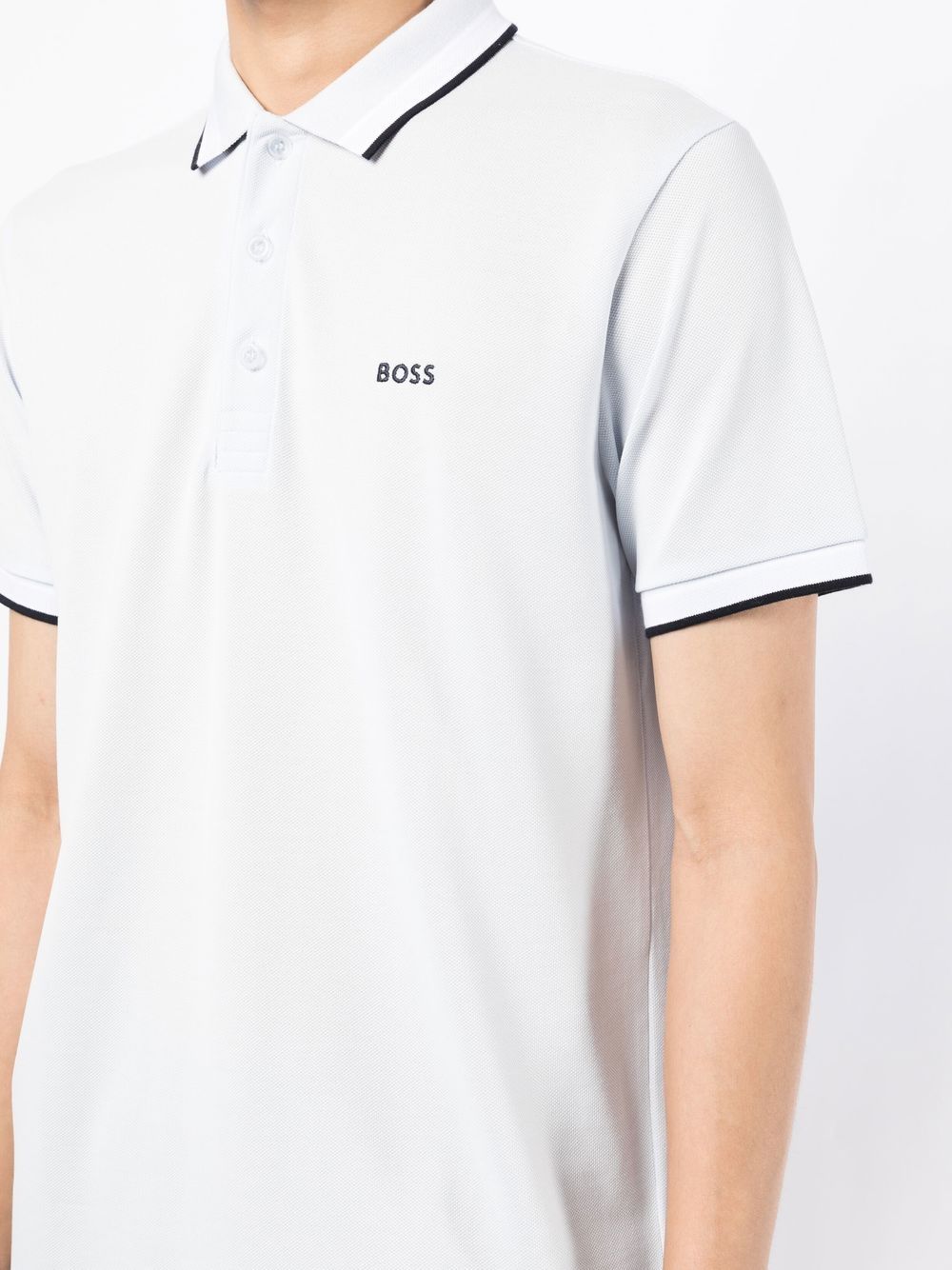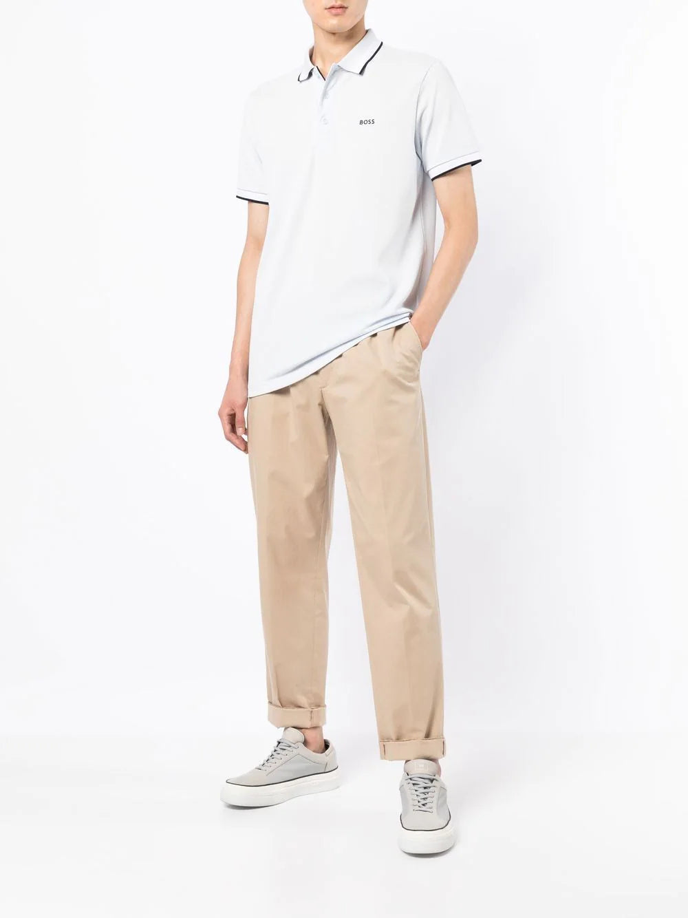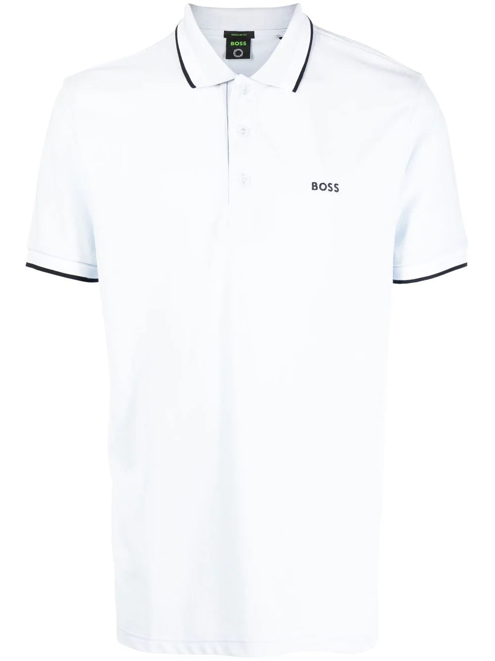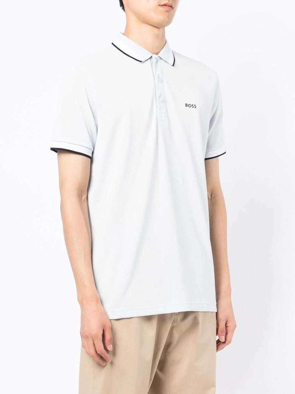 قميص بولو مطرز بشعار BOSS باللون الأزرق الفاتح