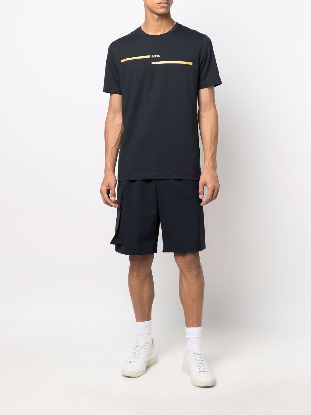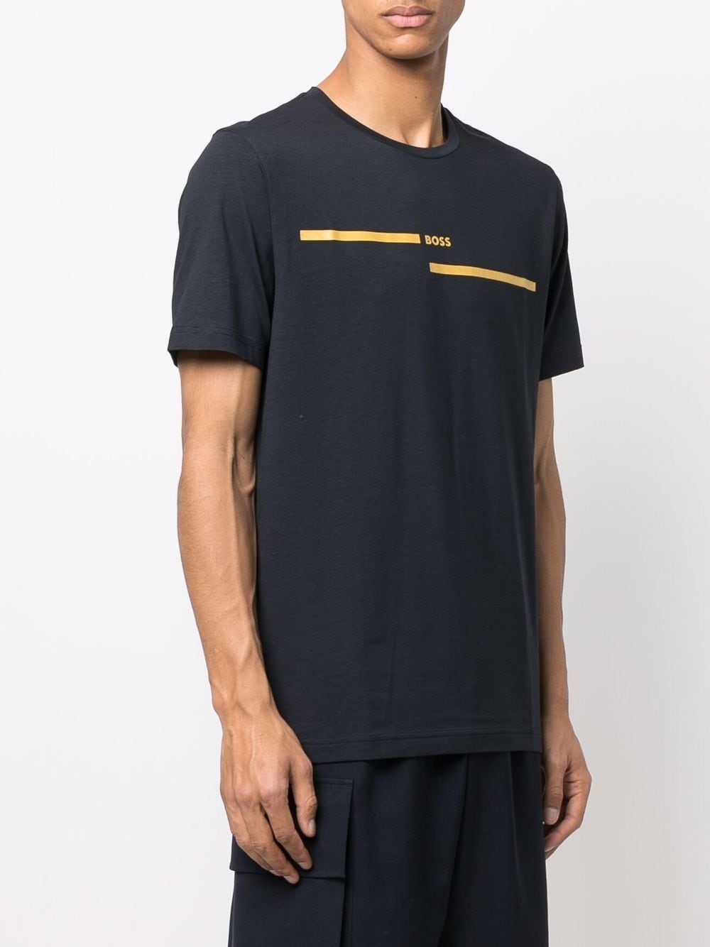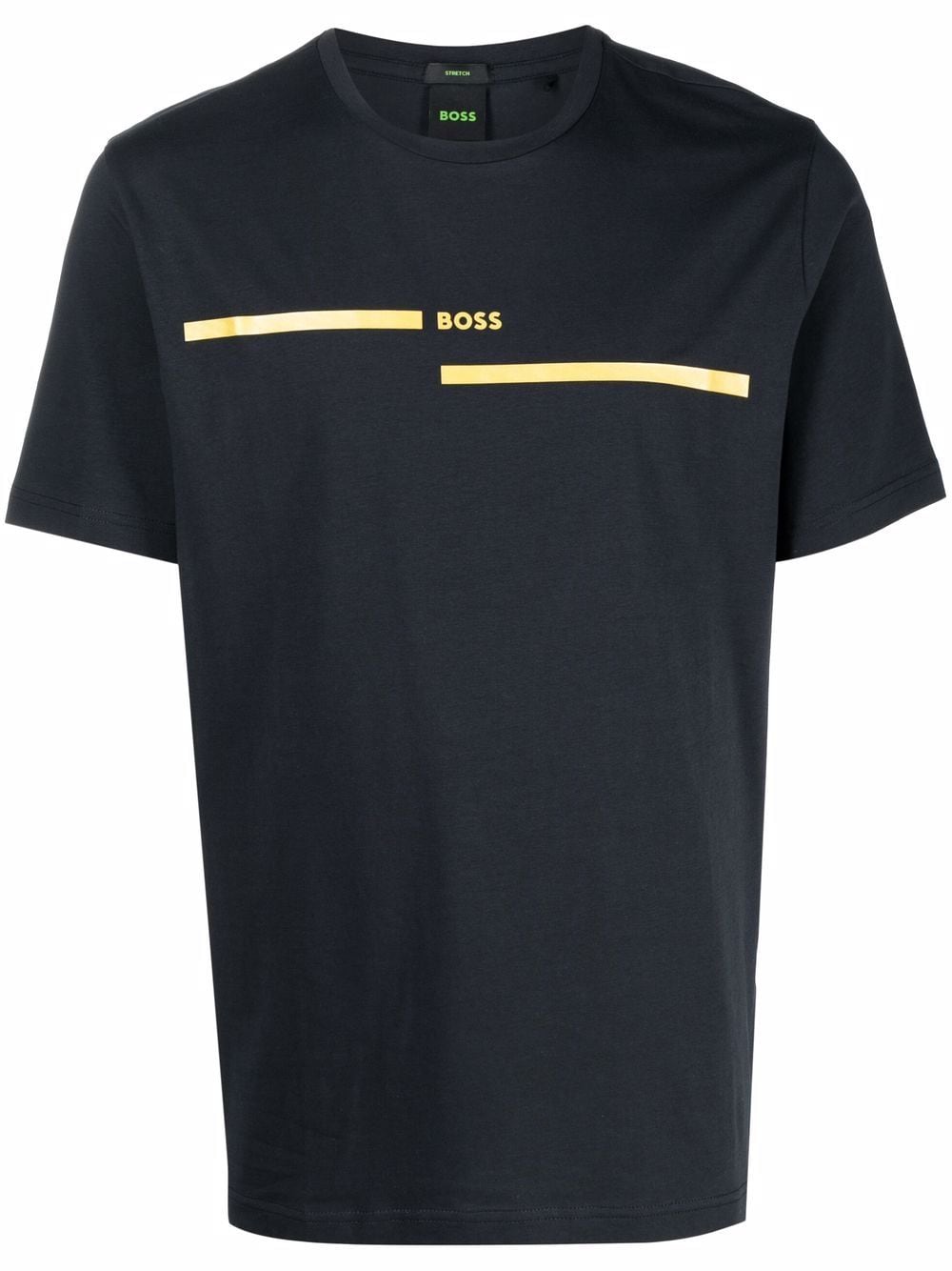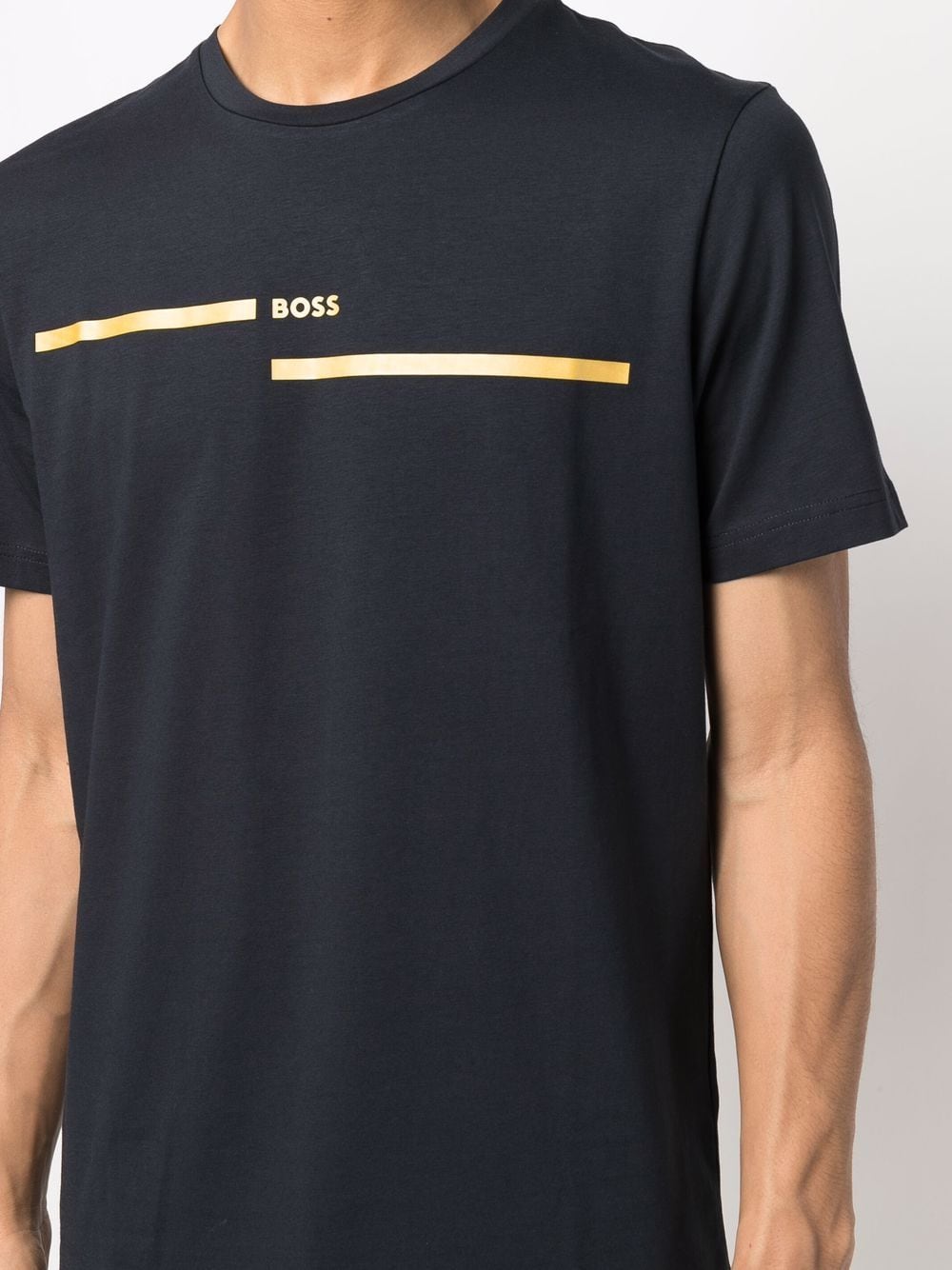 تي شيرت قطني بطبعة شعار BOSS باللون الأزرق الداكن
