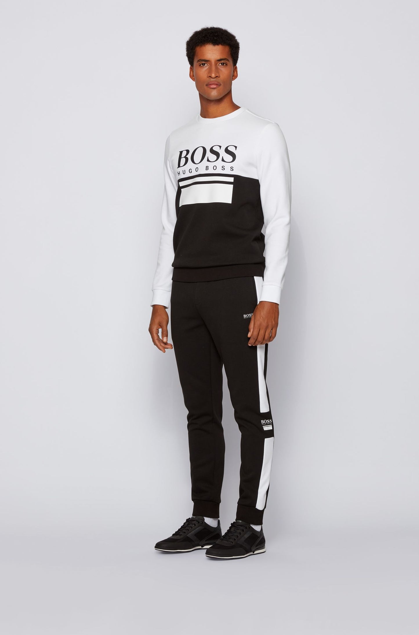 حذاء رياضي متعدد الاستخدامات من بوس، مصنوع من مواد متنوعة لإطلالة هجينة. يتميز هذا الحذاء الرياضي منخفض الساق بطبعة شعار بوس كبير عند الكعب، وهو مصمم بمزيج من القماش الشبكي الشفاف والجلد الصناعي المطاطي. ارتدِ هذا الحذاء ذو الأربطة لإضفاء لمسة رياضية على إطلالاتك العصرية.