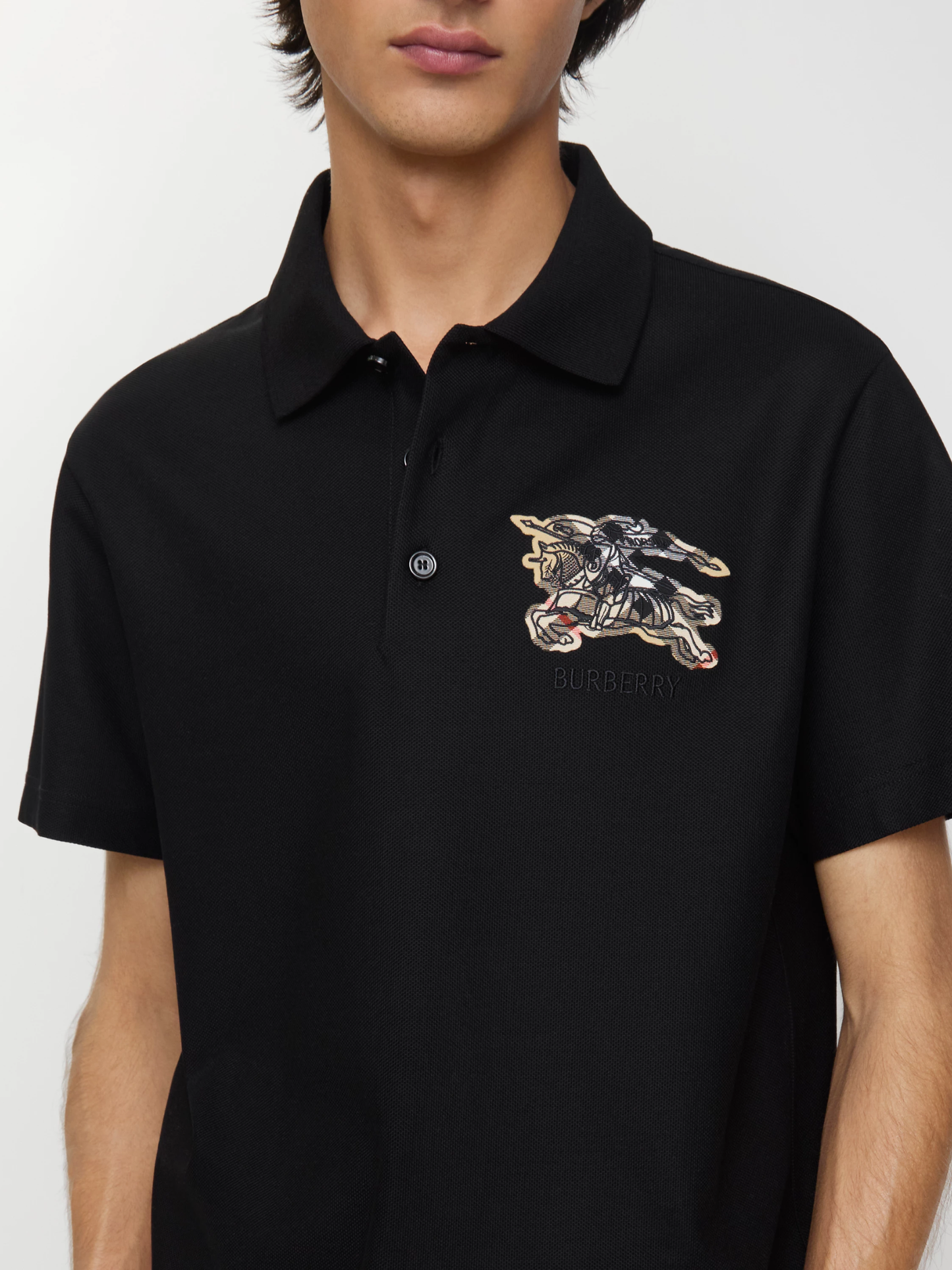 BURBERRY EKD Check Cotton Polo Shirt Black