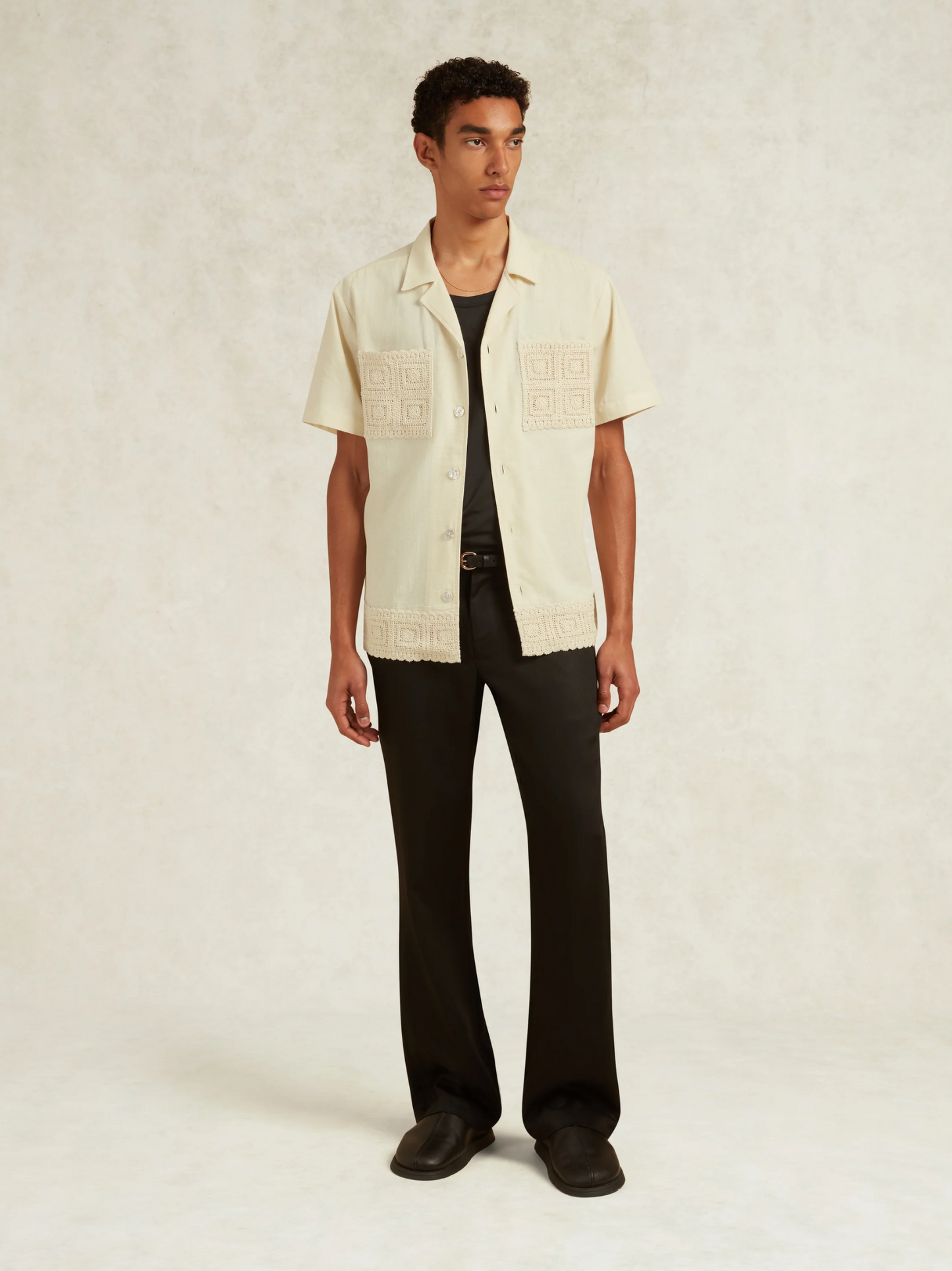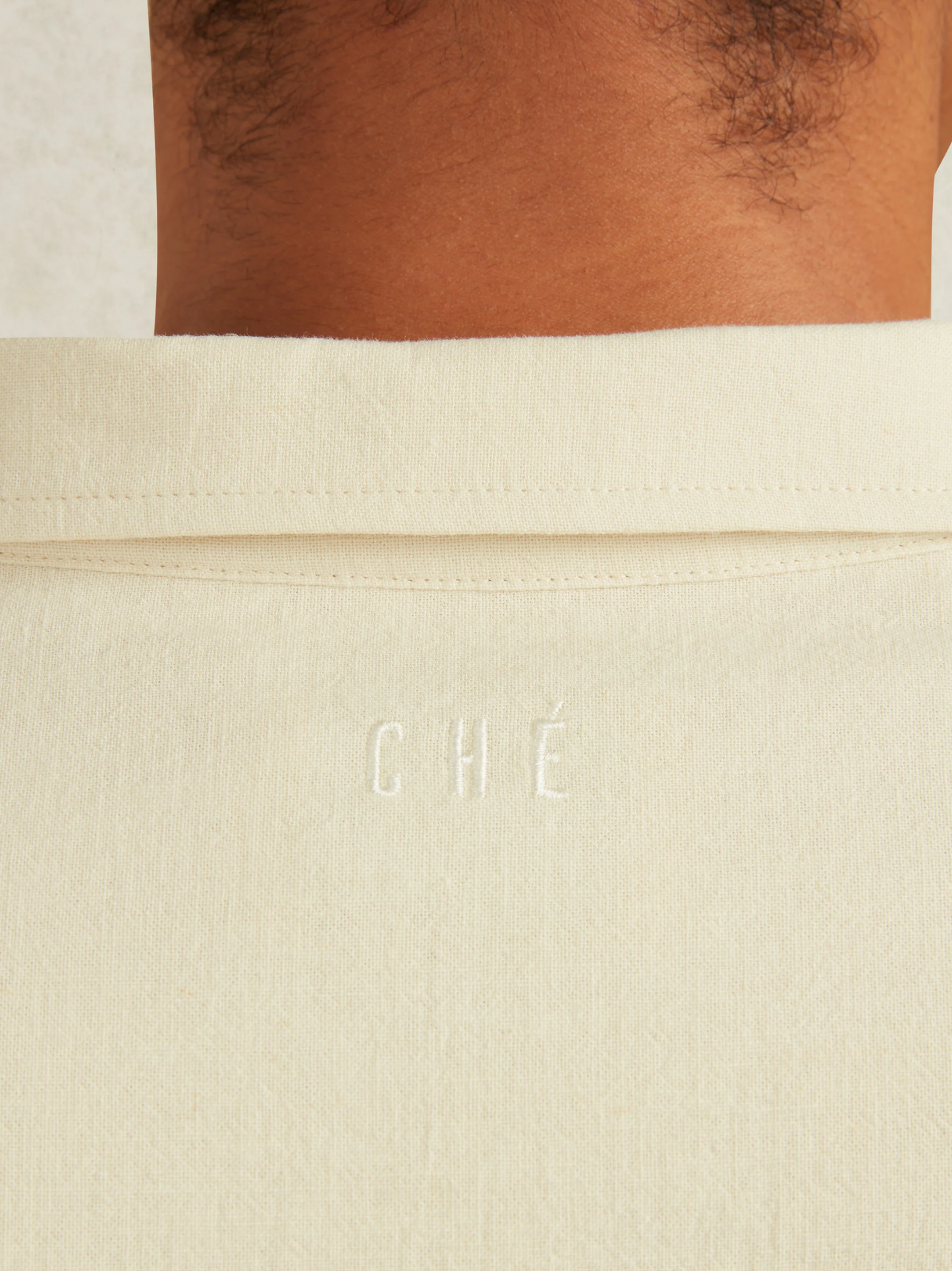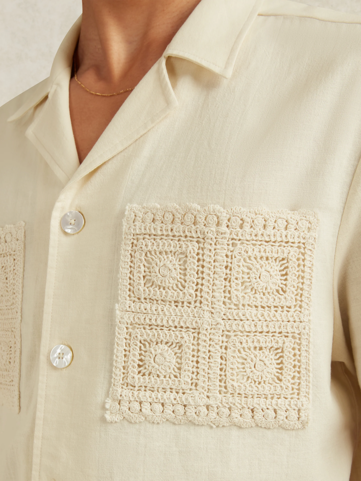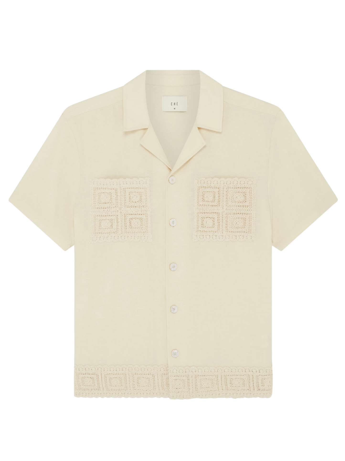 قميص CHÉ Inigo من مزيج الكتان بتفاصيل كروشيه باللون العاجي