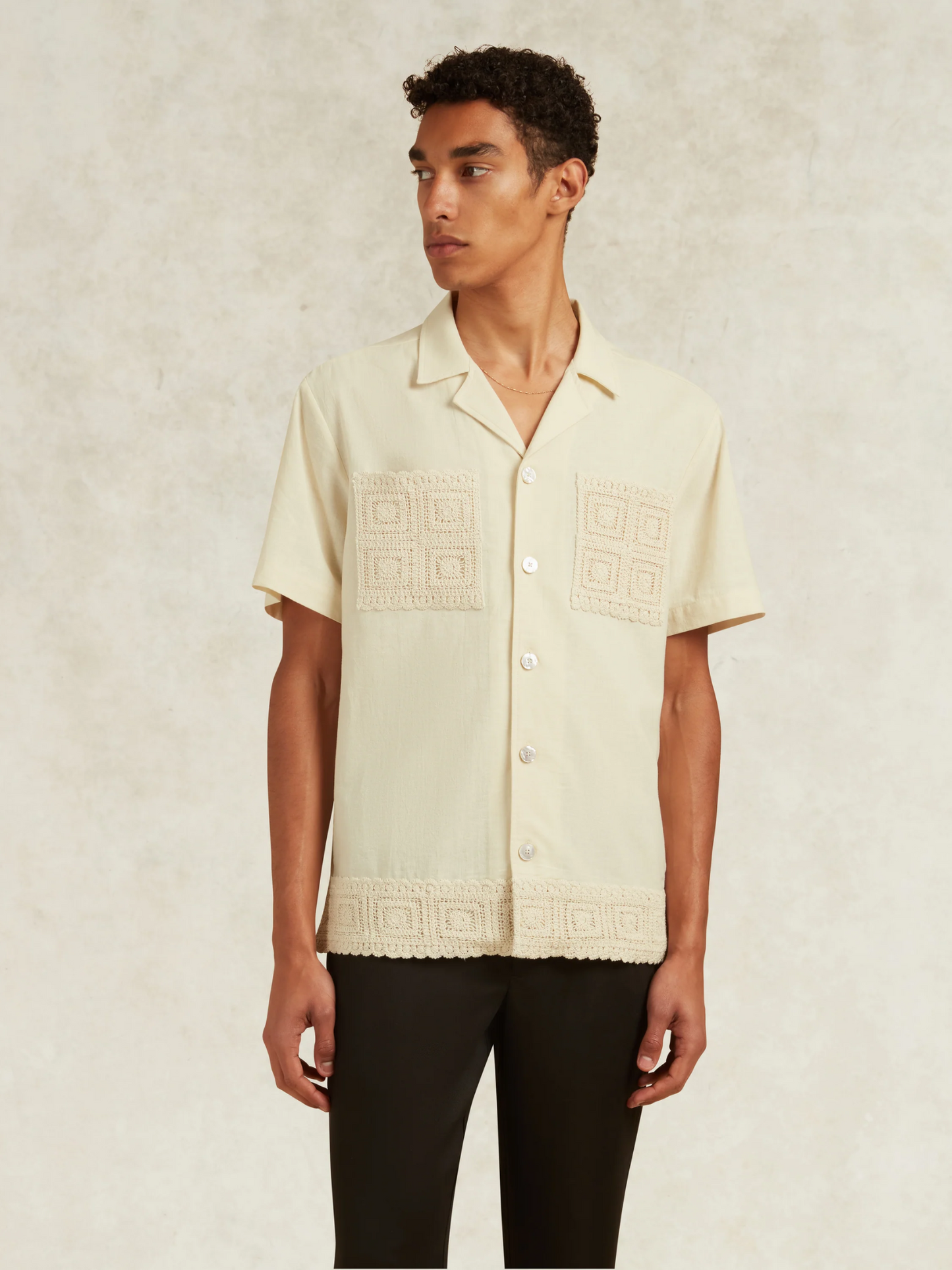 قميص إنيغو القطني العاجي يتميز بجيوب وحاشية كروشيه جذابة ومعقدة، مع ياقة ريفييرا أنيقة تُضفي لمسة من الرقي. هذا القميص من المؤكد أنه سيصبح خياركِ الأمثل من مصمم محبوب.