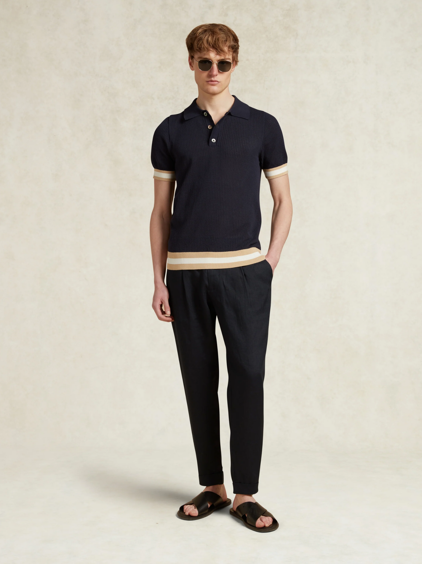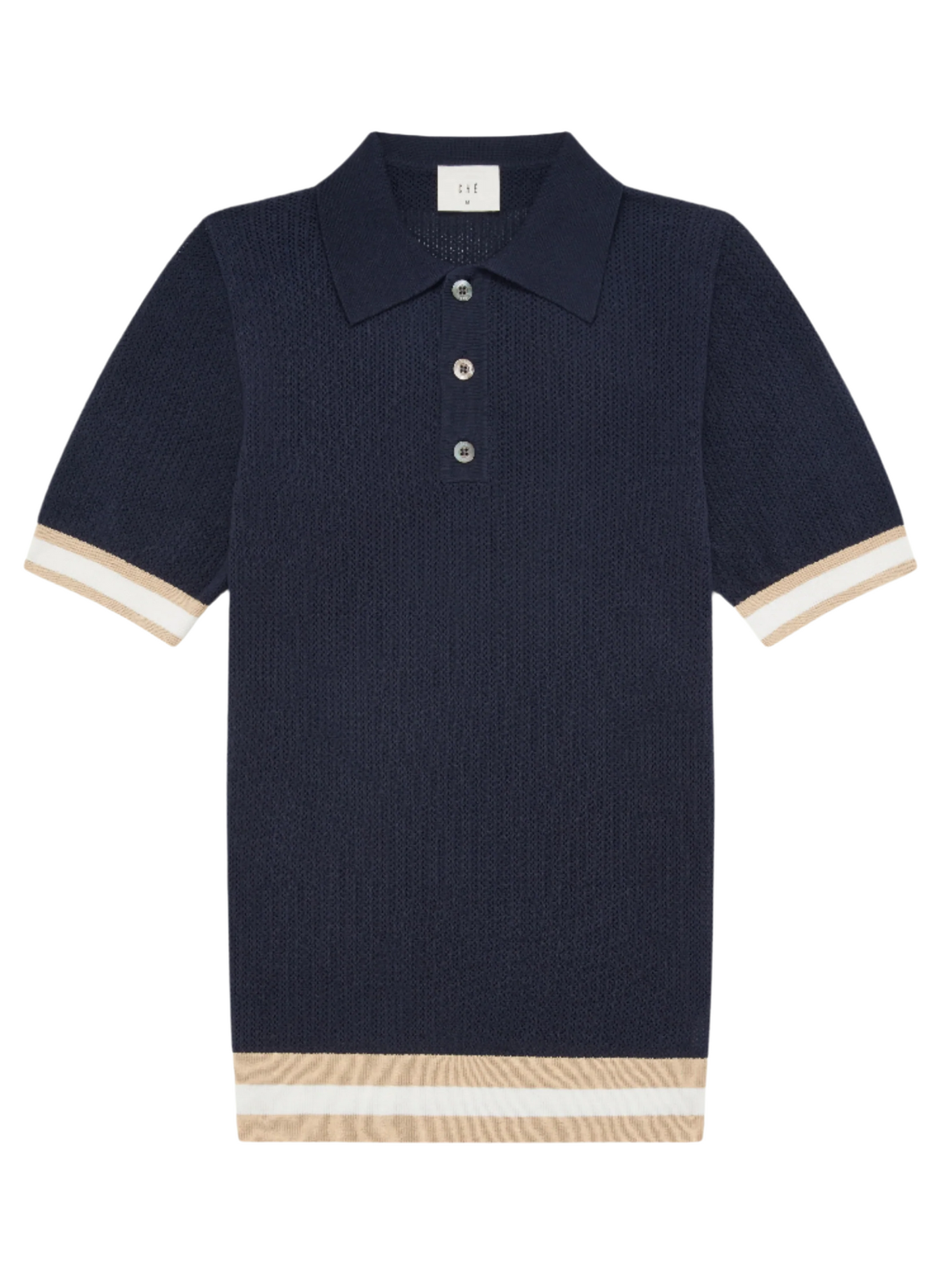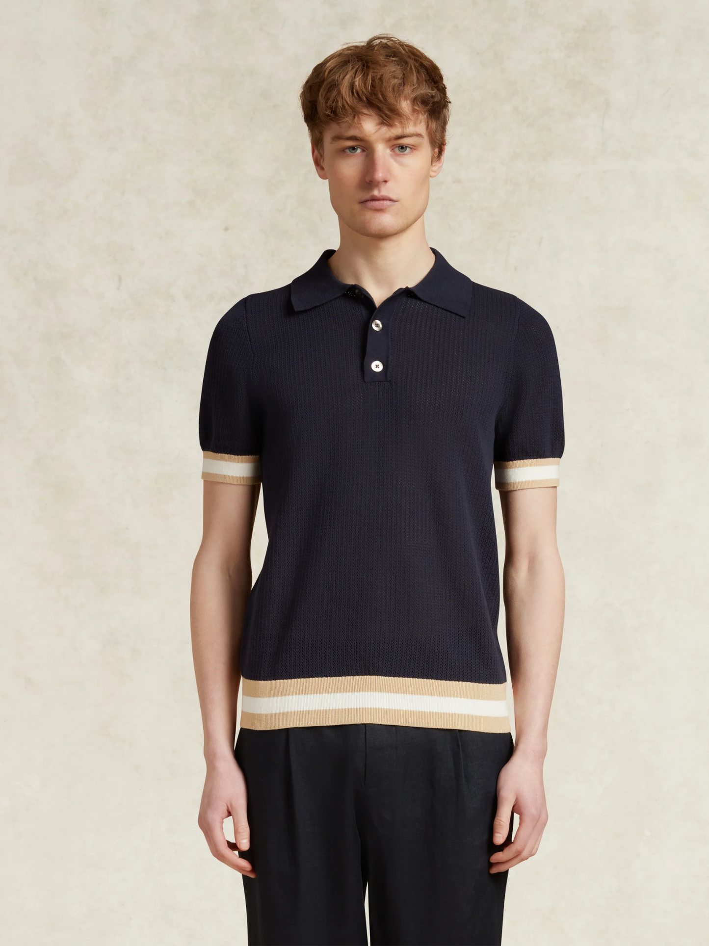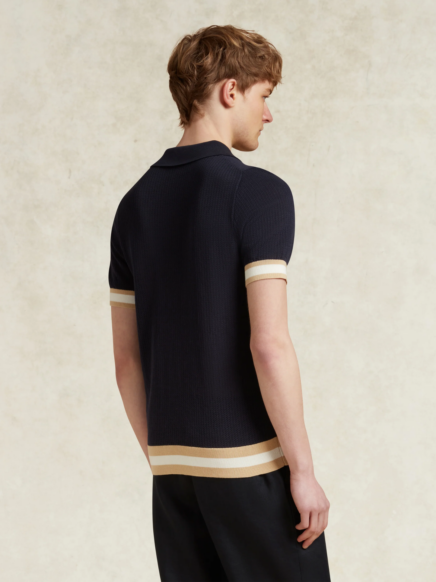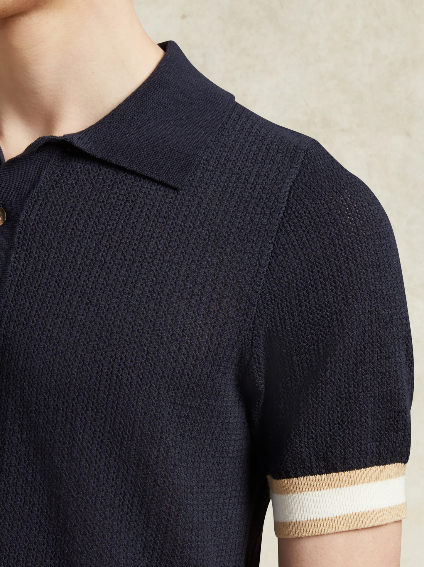 قميص بولو مفتوح من القطن CHÉ Quinn باللون الأزرق الداكن