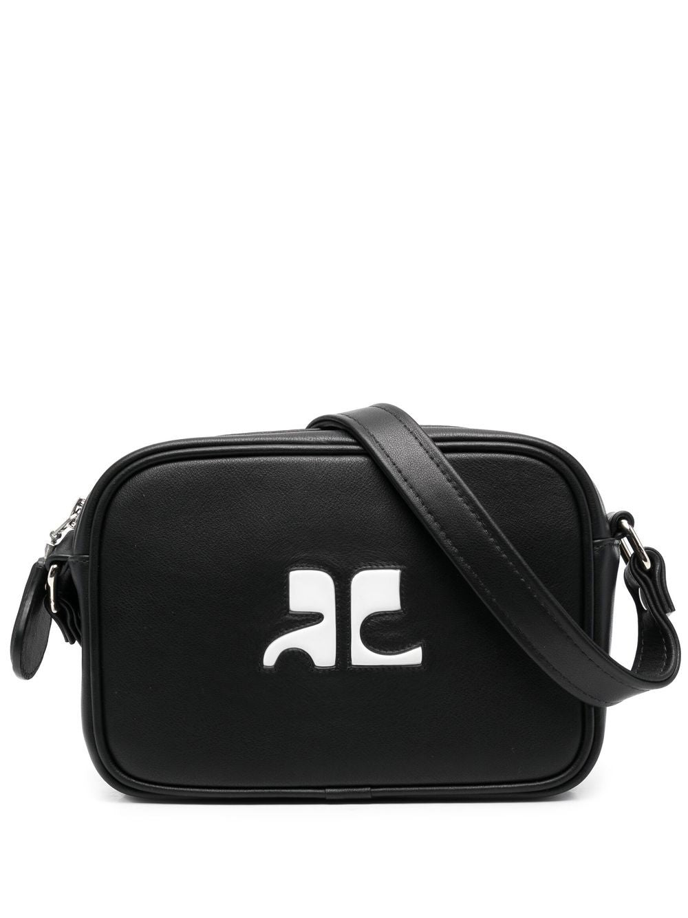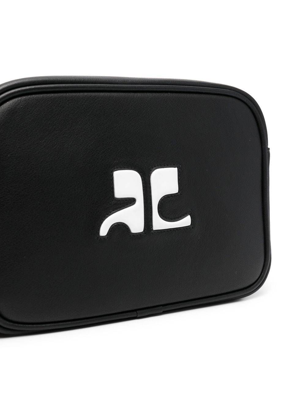 حقيبة جلدية سوداء بشعار COURRÈGES للنساء