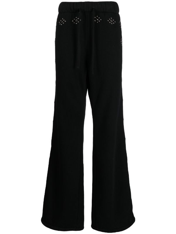بنطال رياضي من الصوف الناعم من آلان شيربا بتصميم بيزلي مرصع بالأحجار باللون الأسود