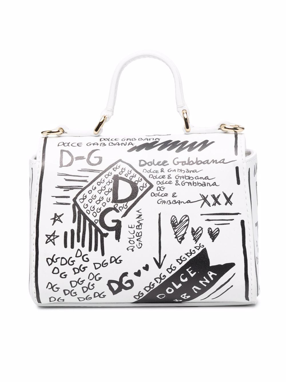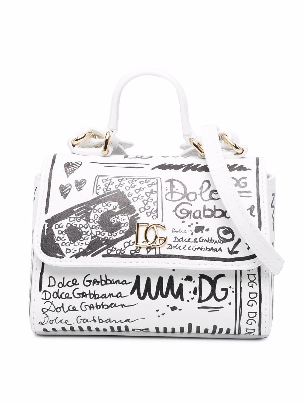 حقيبة دولتشي آند غابانا كيدز بطبعة جرافيتي باللون الأبيض