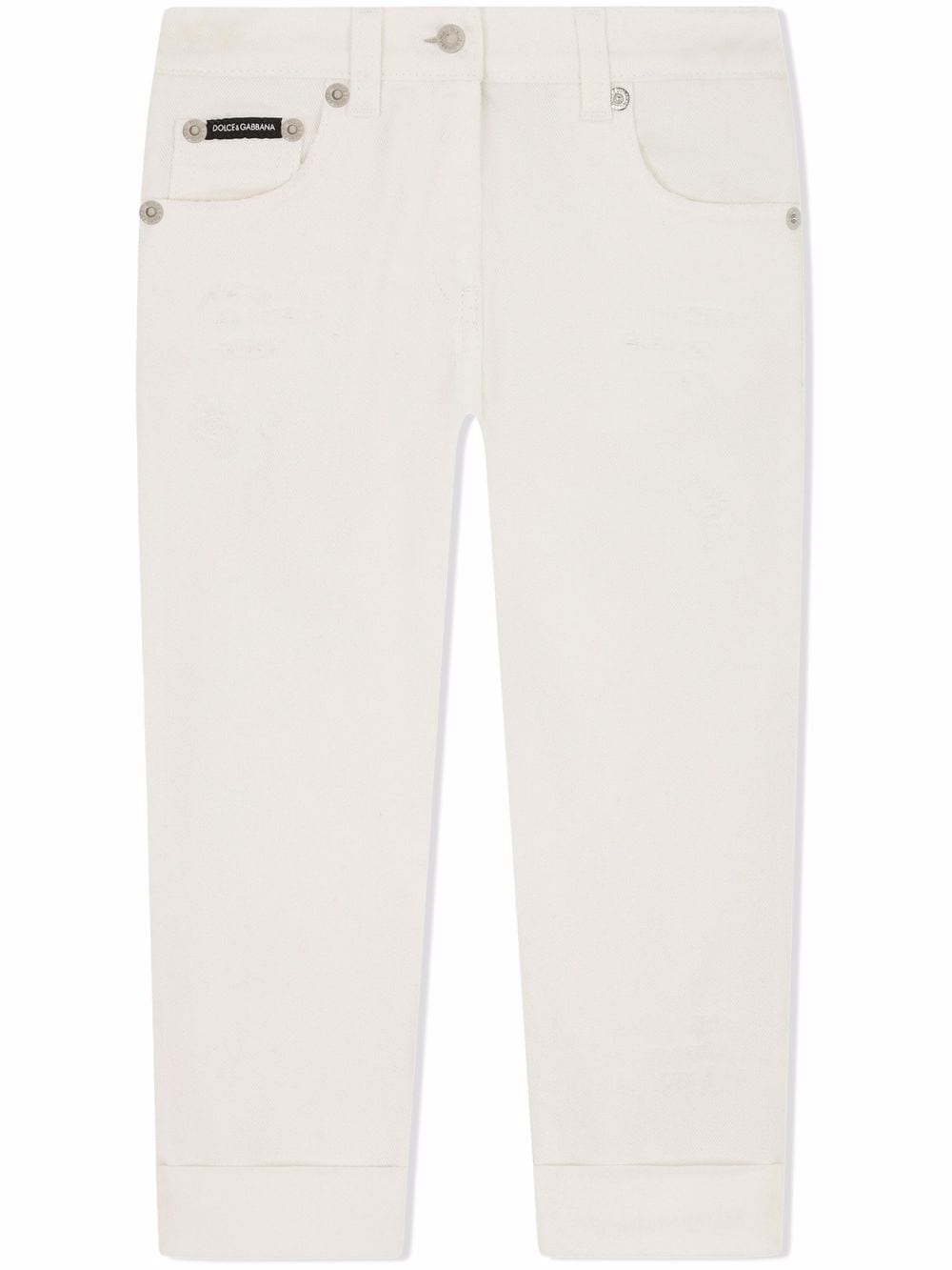 بنطلون جينز ضيق متوسط الارتفاع من دولتشي آند غابانا للأطفال - أبيض مائل للصفرة