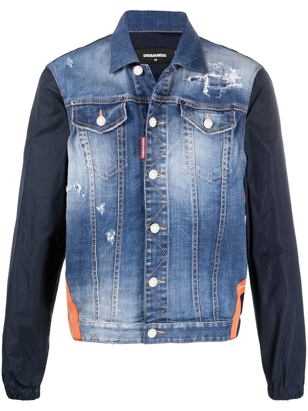جاكيت جينز بأكمام متباينة من DSQUARED2 باللون الأزرق