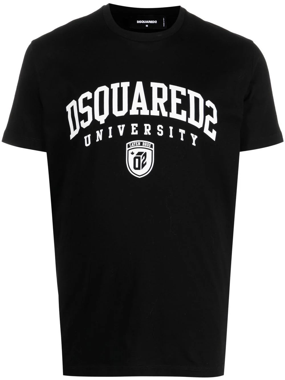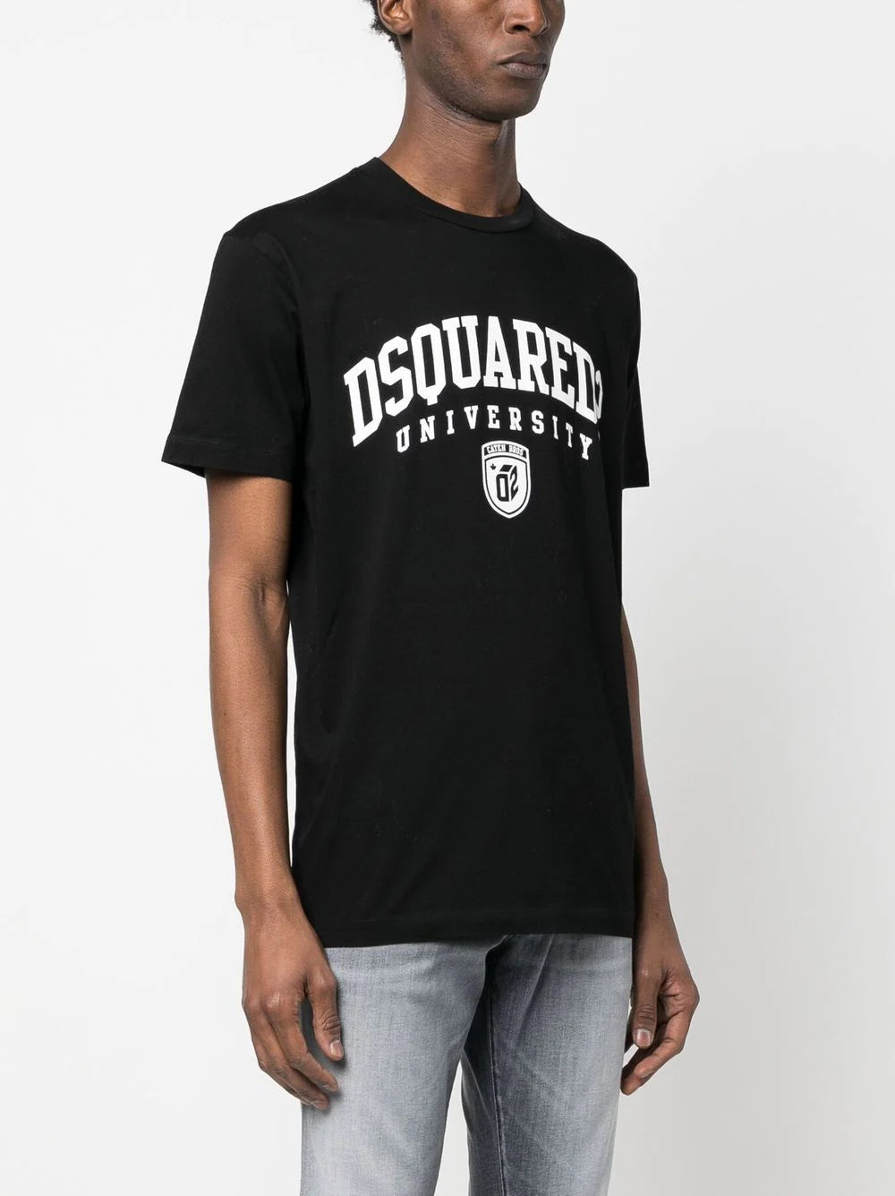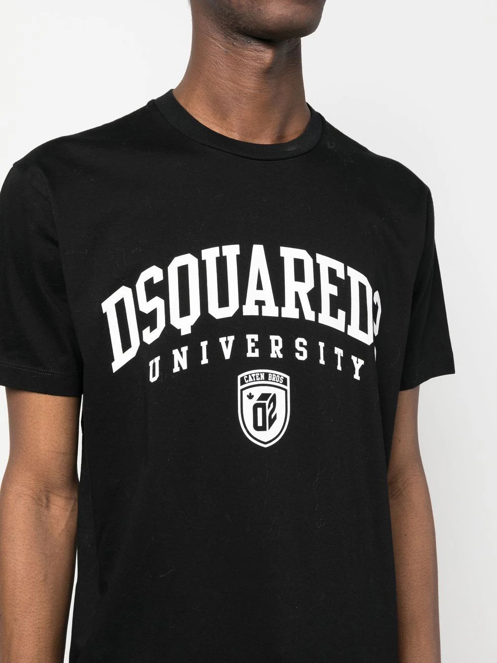 تي شيرت DSQUARED2 مطبوع عليه شعار الجامعة باللون الأسود