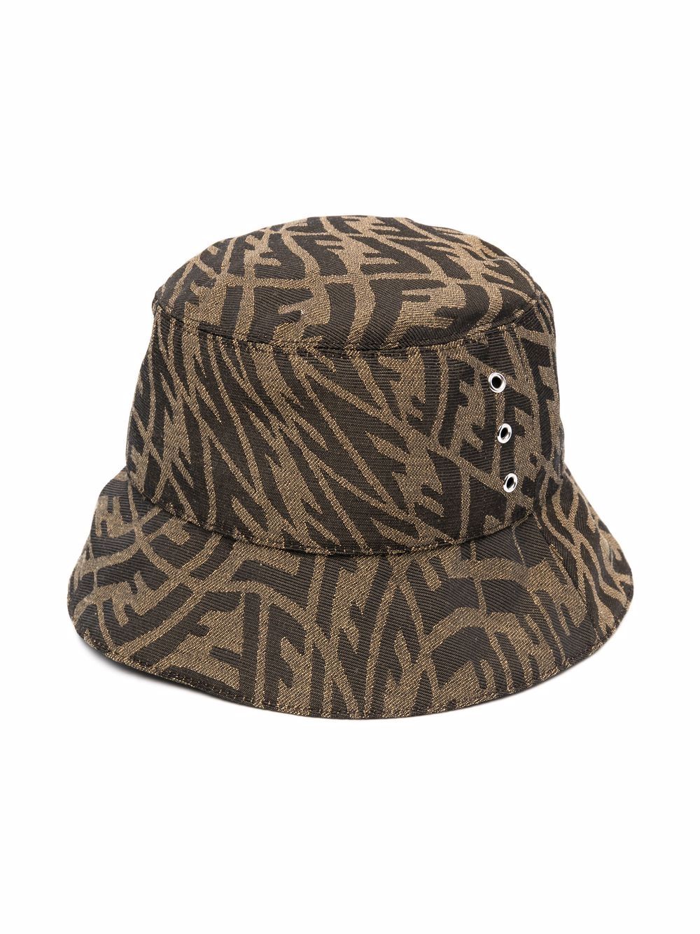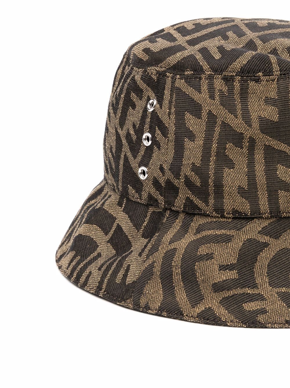 قبعة دلو مطرزة بشعار FENDI KIDS باللون البني