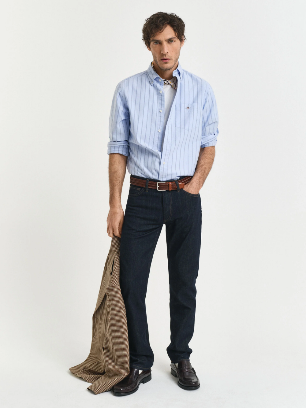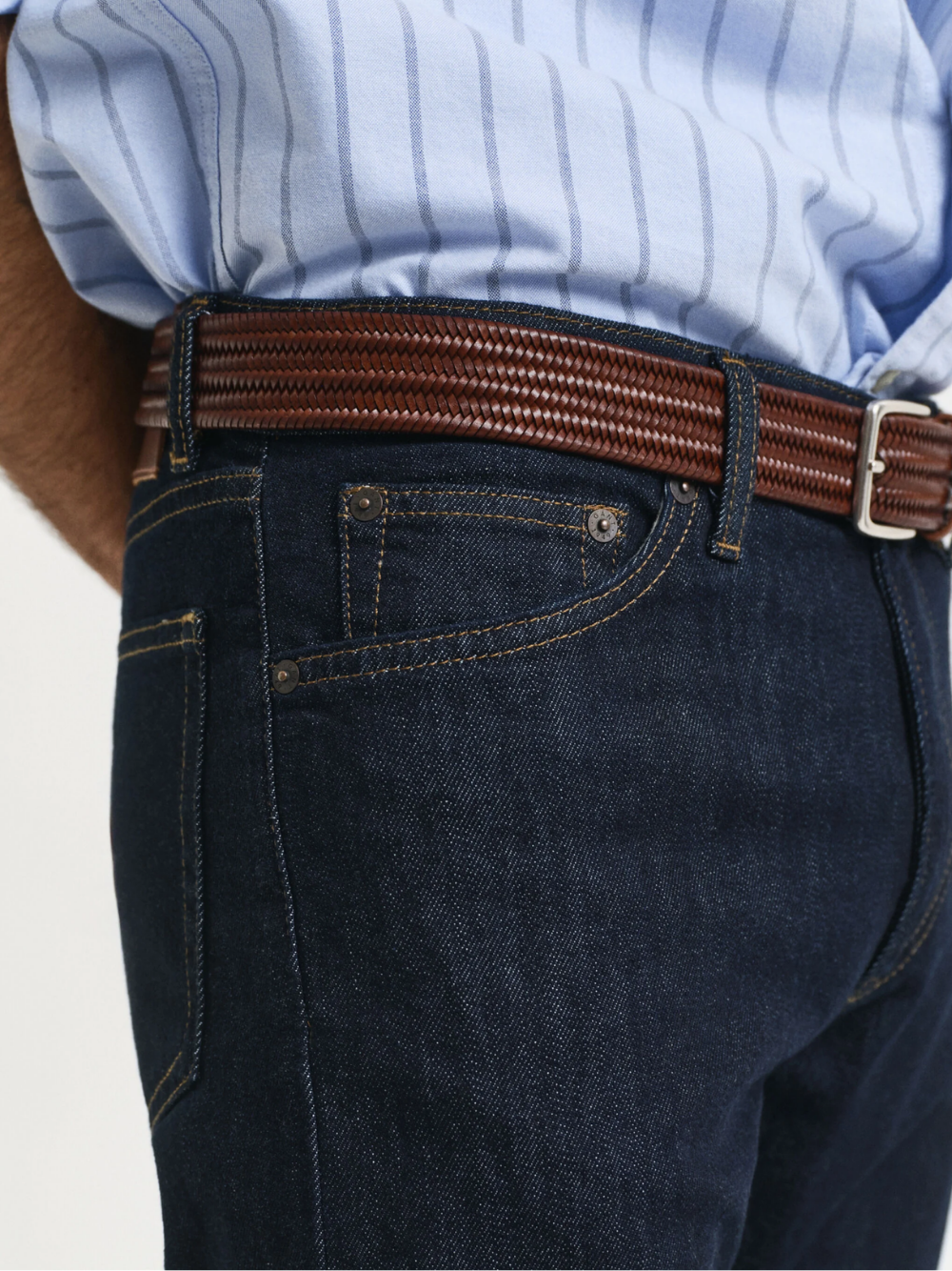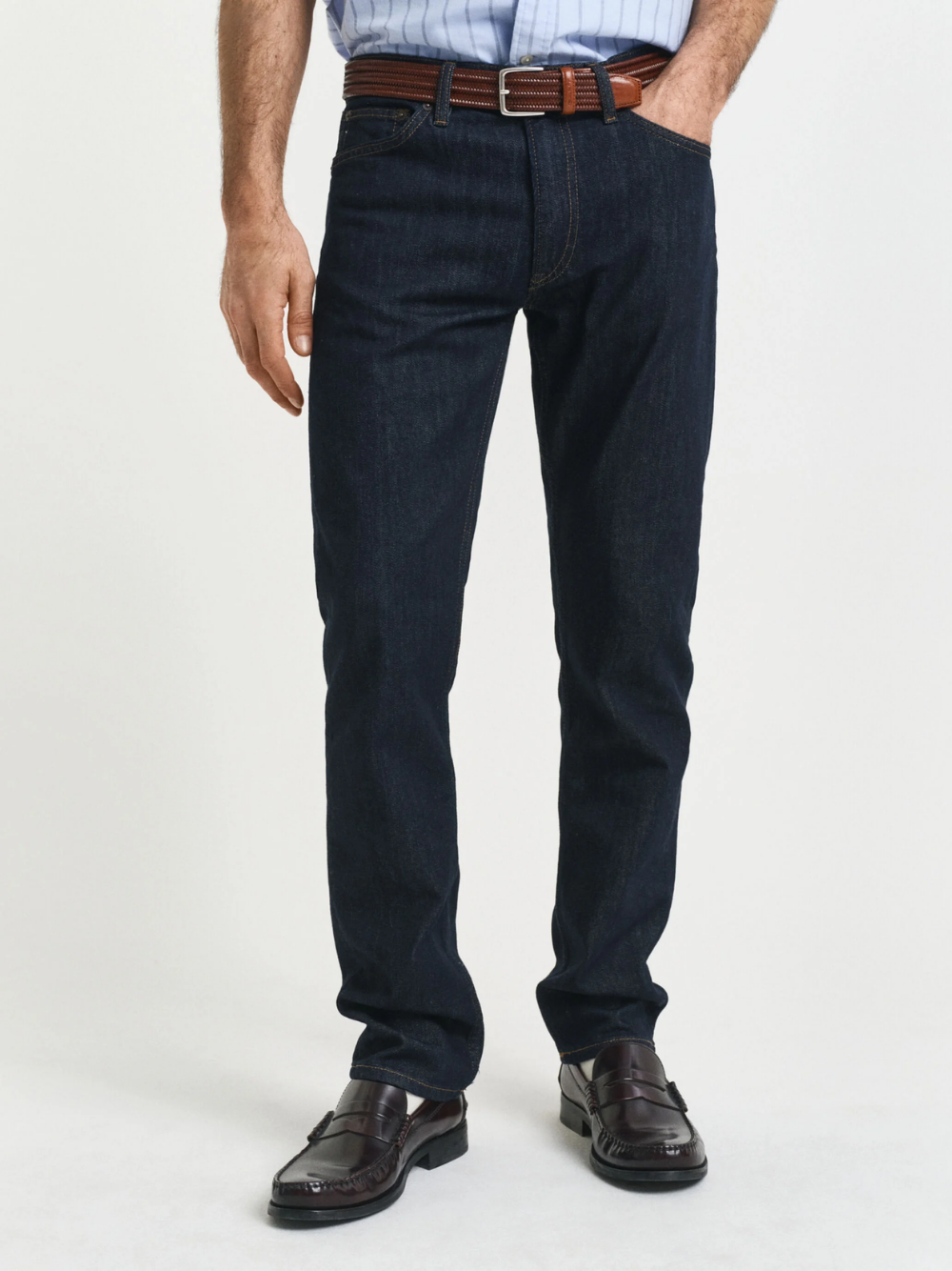 السعر العادي Dhs. 385.00 AEDCrafted in cotton with a hint of stretch, these jeans feature a regular fit for a comfortable, classic style. A versatile wardrobe staple, these jeans are easily dressed up or down for almost any occasion.