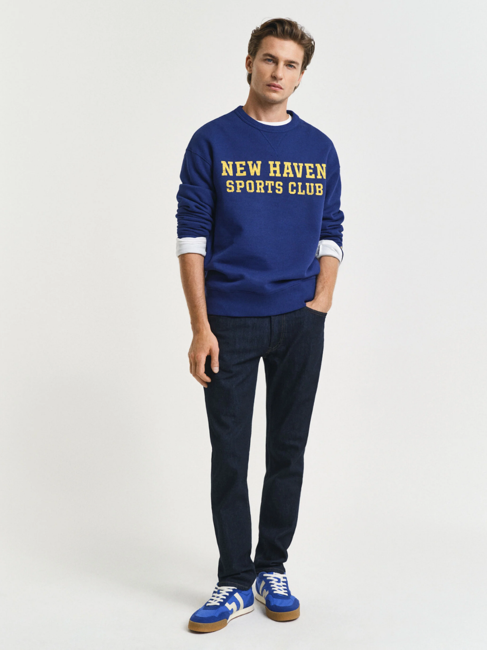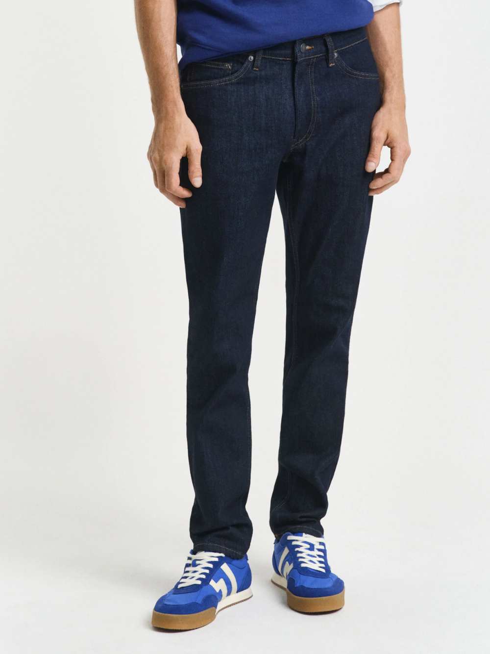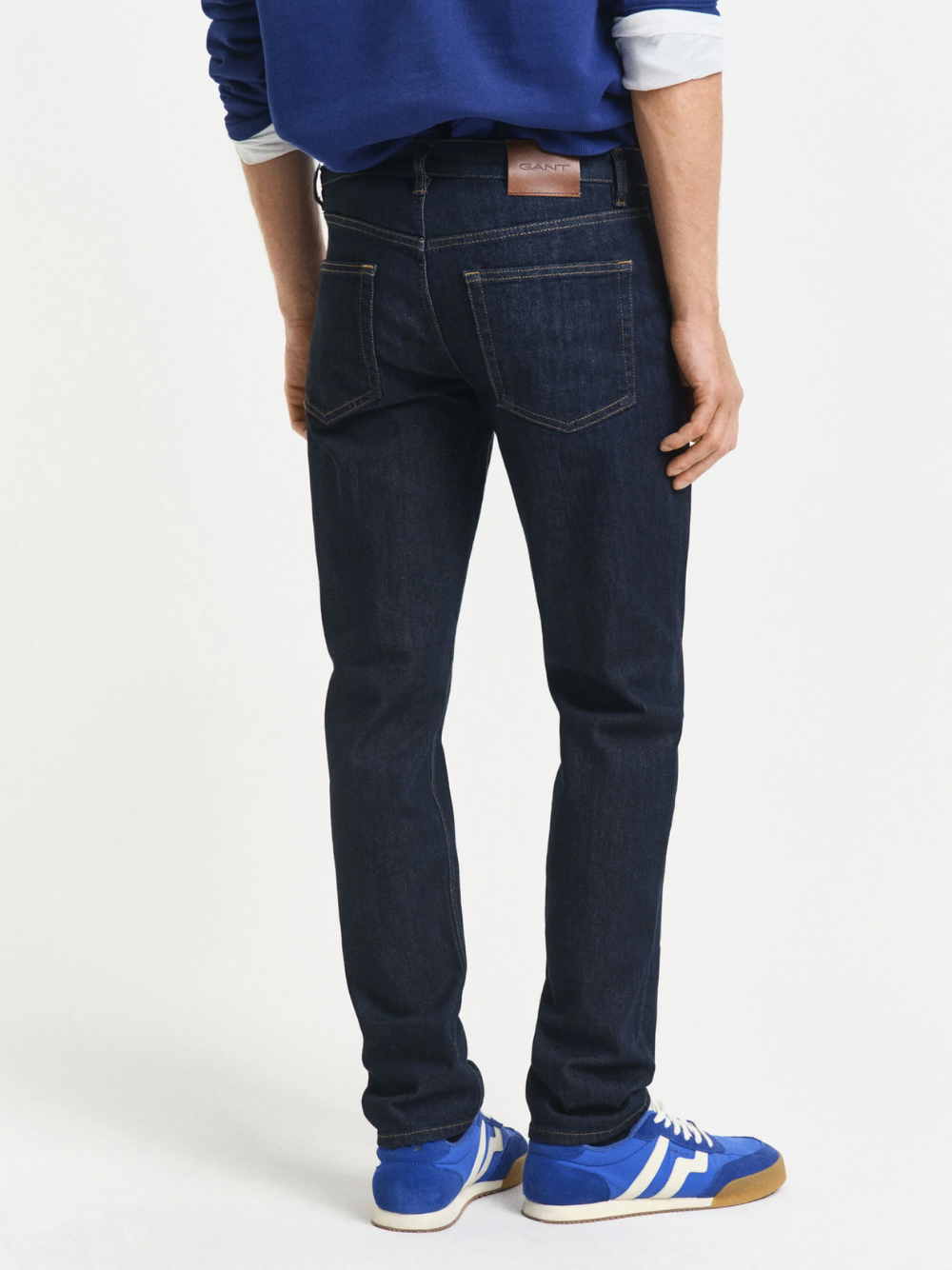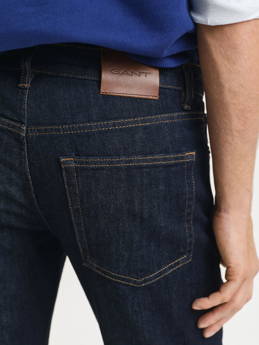 Crafted in a cotton blend with a hint of stretch, these mid-rise jeans are cut in a slim fit for a contemporary style. Pre-washed for a worn-in feel, they feature branded shank button and rivets, a zip fly and a leather logo patch at the back waistband.